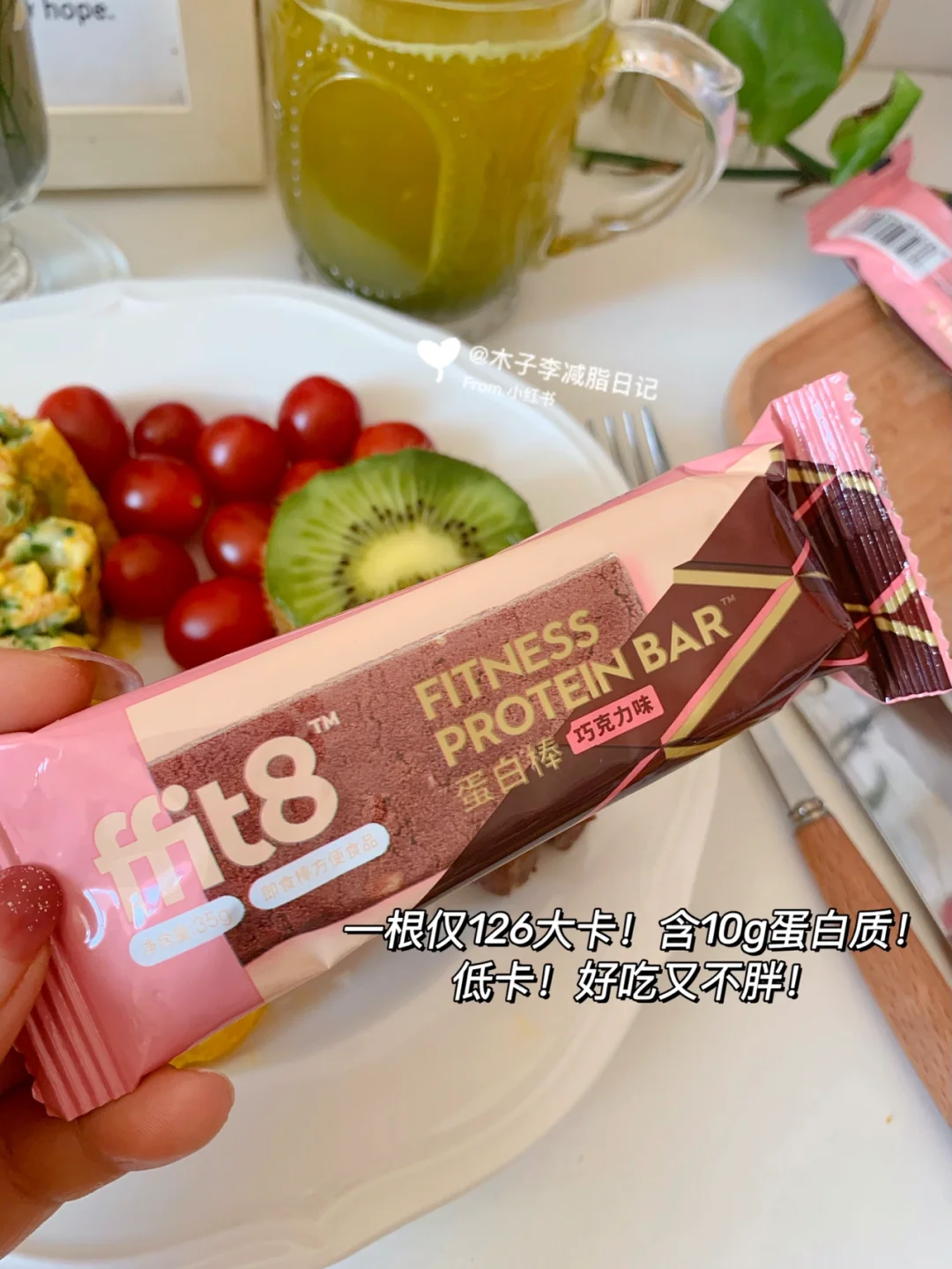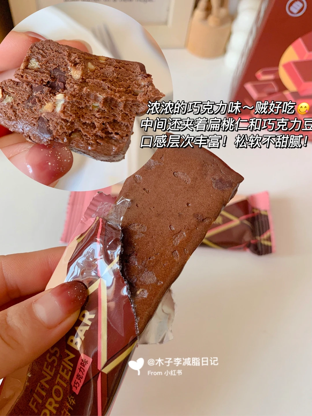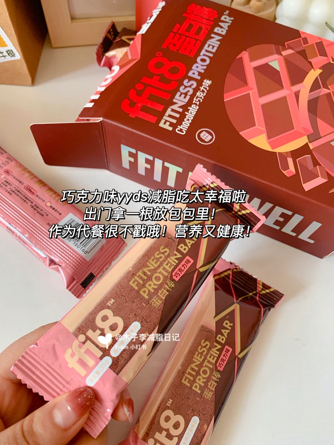 📣:早餐吃了新入的蛋白棒,减脂期蛋白棒没断过,好吃又能补充蛋白质~市面上的蛋白棒也吃过不少!这个ffit8蛋白棒我还是第一次吃~我选择的巧克力味的!我可是巧克力🍫脑袋呀!它里面核心成分是分离乳清蛋白,吃着不甜又不腻~里面夹着扁桃仁碎口感软糯丰富!我现拿来代晚餐!饱腹~又解馋😋!