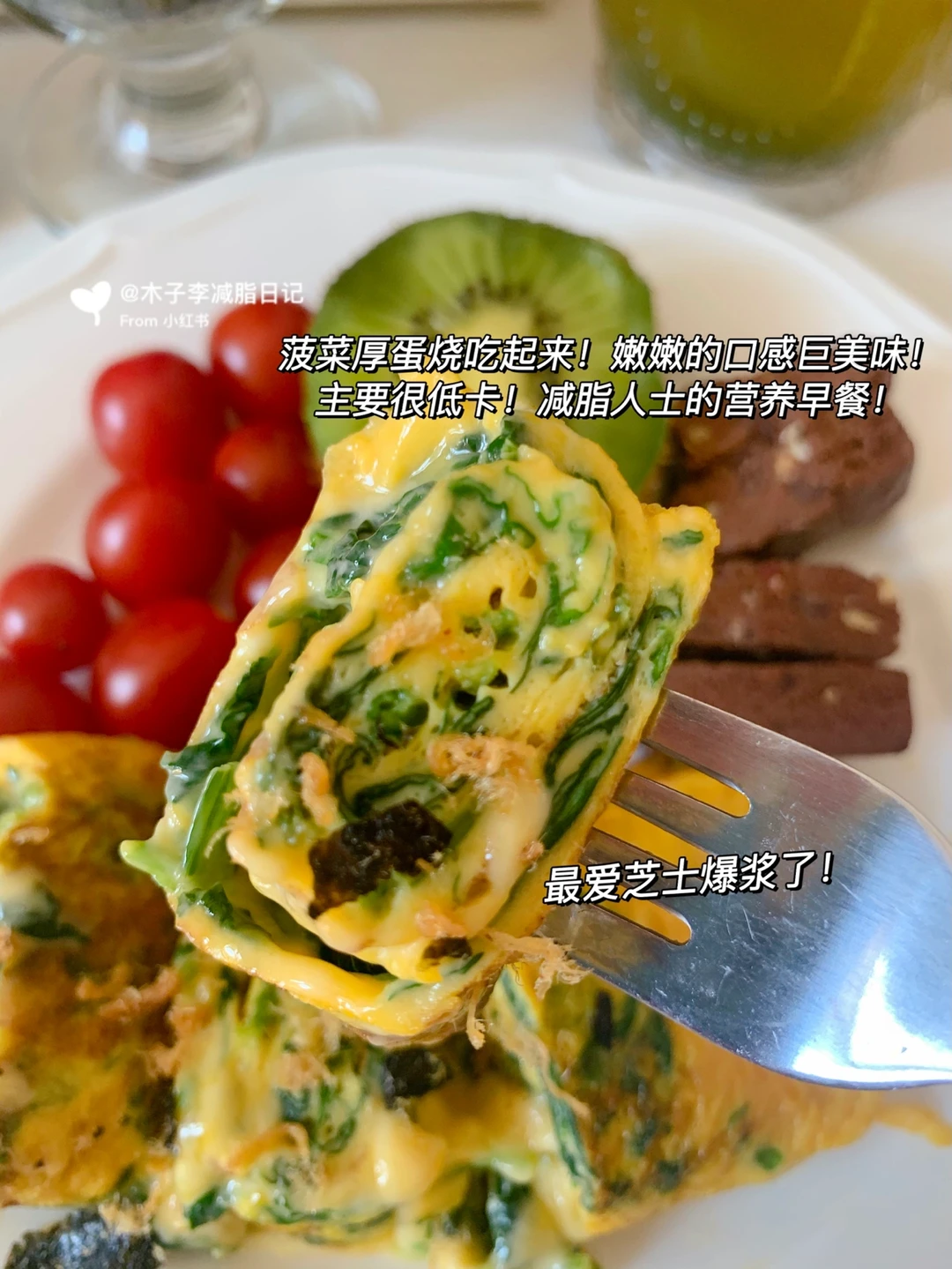 🍳早餐:酵素粉➕菠菜厚蛋烧➕猕猴桃➕ffit8蛋白棒➕黑豆浆➕千禧果