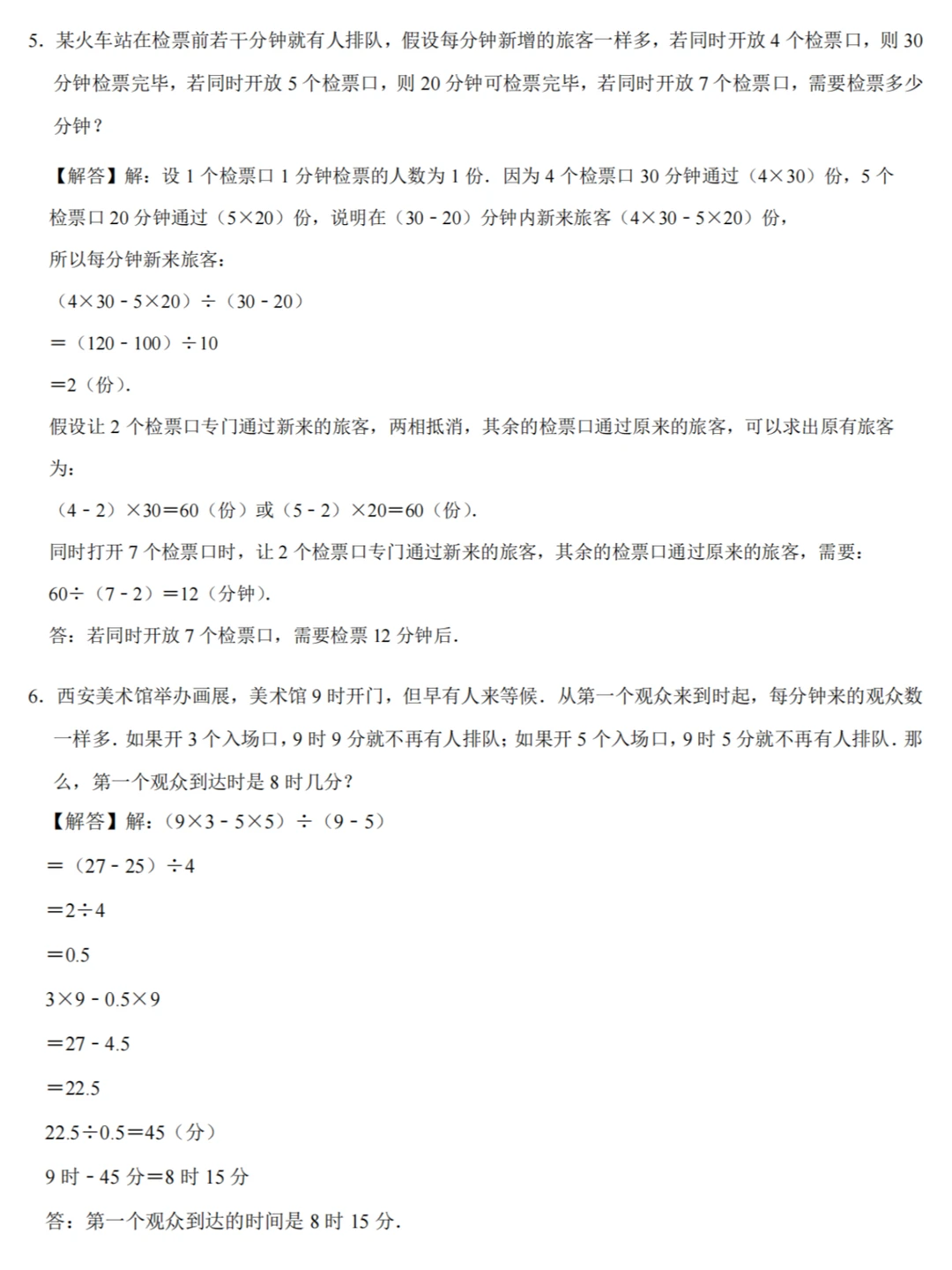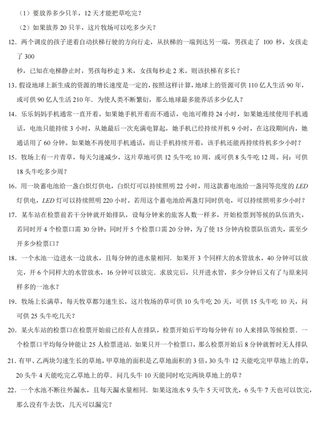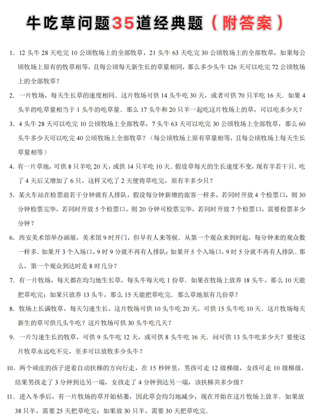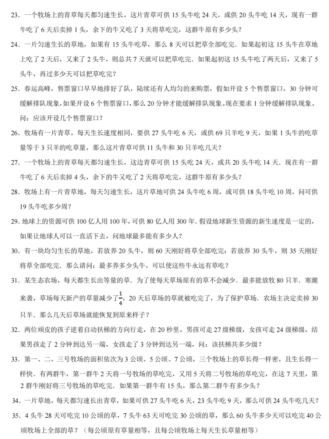 1️⃣草的生长速度=(对应的牛头数×吃的较多天数﹣相应的牛头数×吃的较少天数)÷(吃的较多天数﹣吃的较少天数);