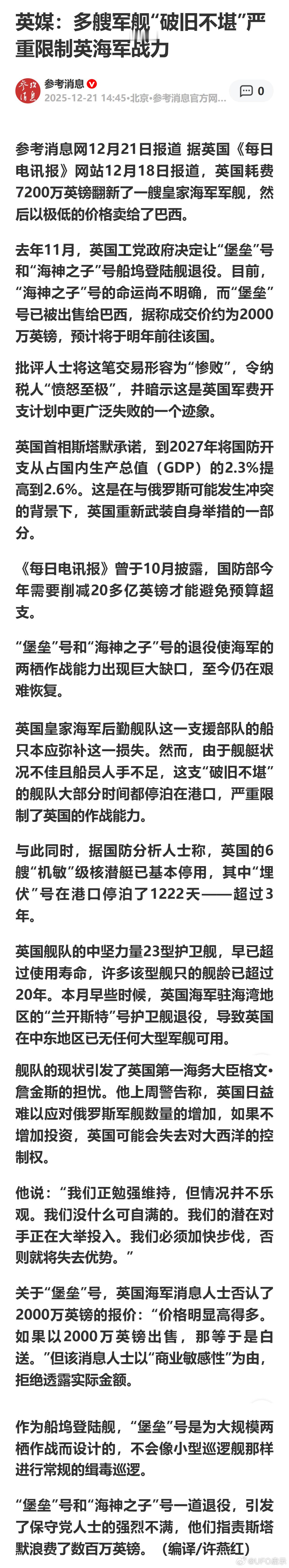 英媒:多艘军舰“破旧不堪”严重限制英海军战力