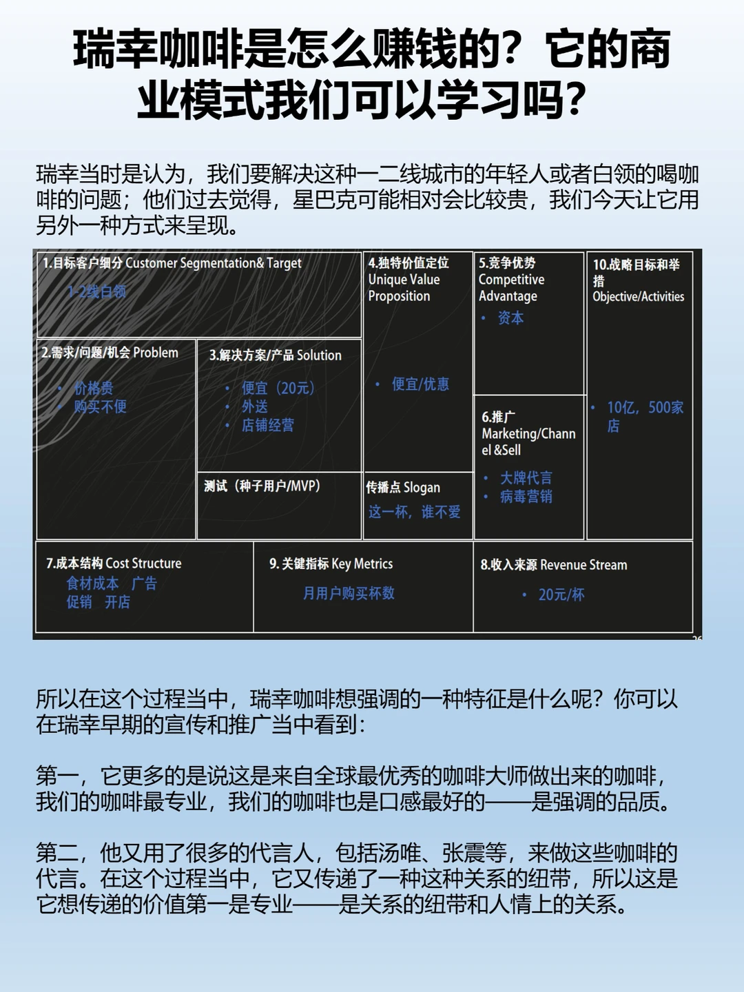 瑞幸当时是认为,我们要解决这种一二线城市的年轻人或者白领的喝咖啡的问题;他们过去觉得,星巴克可能相对会比较贵,我们今天让它用另外一种方式来呈现。