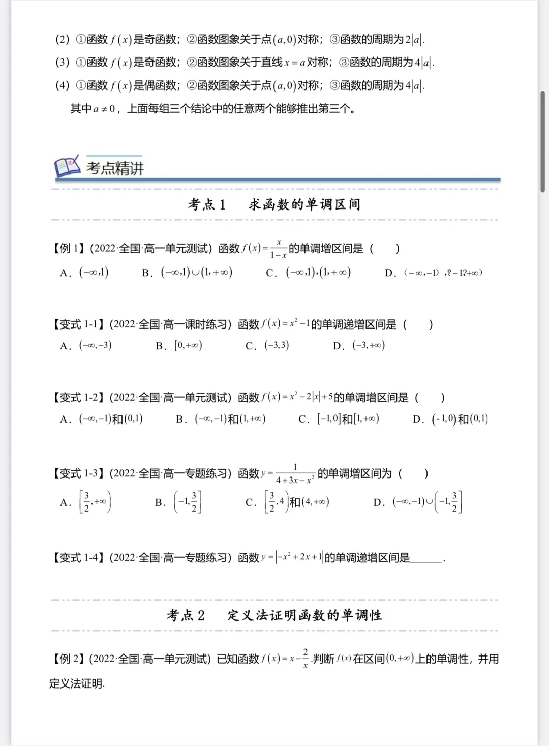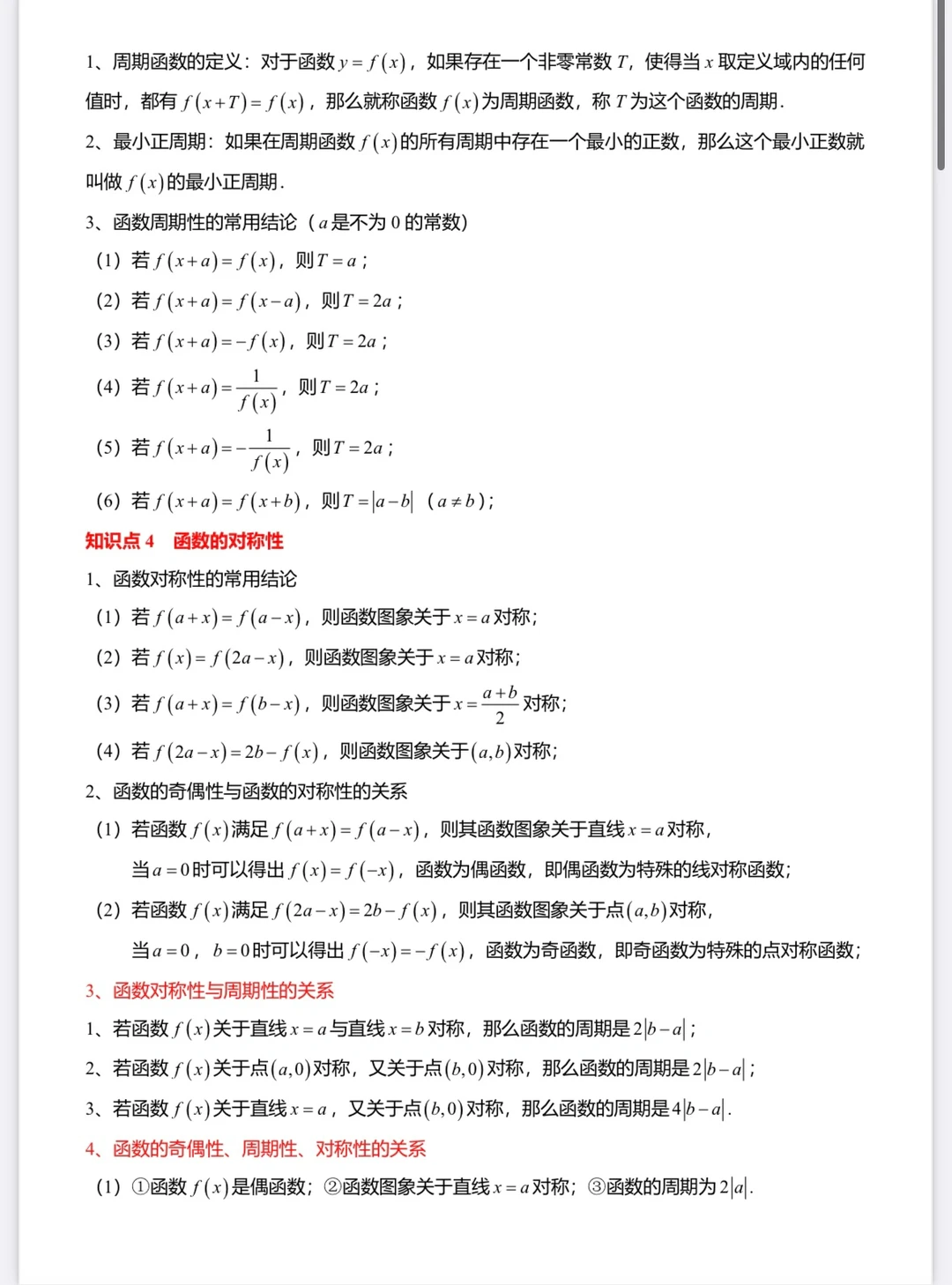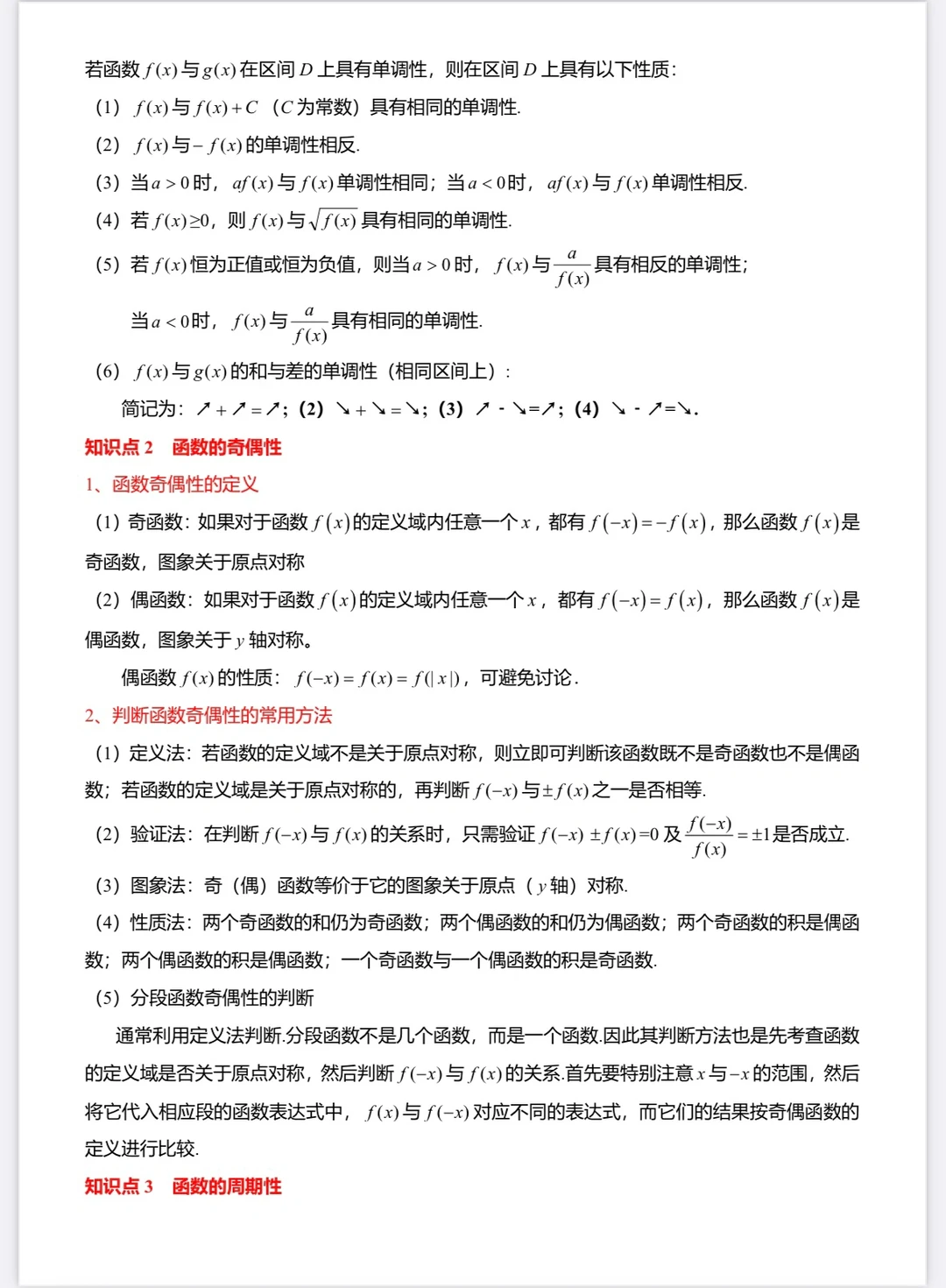 这份资料是关于函数的基本性质(单调性、奇偶性、对称性、周期性)的方法总结和题型归纳。 在学完函数的基本性质后,可作为课外补充资料,让学生加强练习,有助于学生提高解题能力。