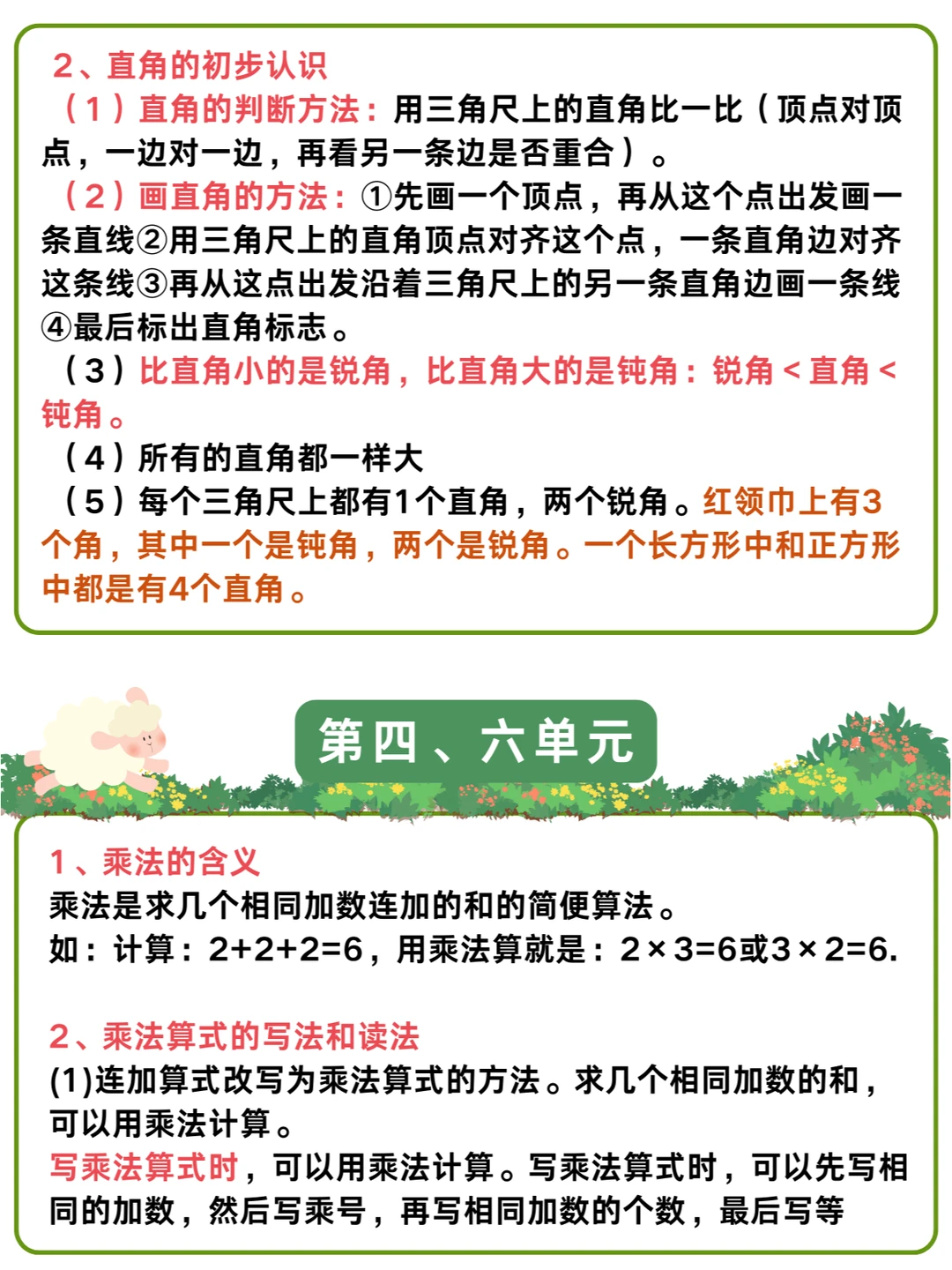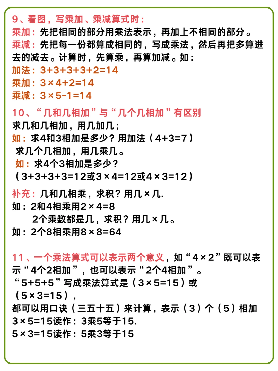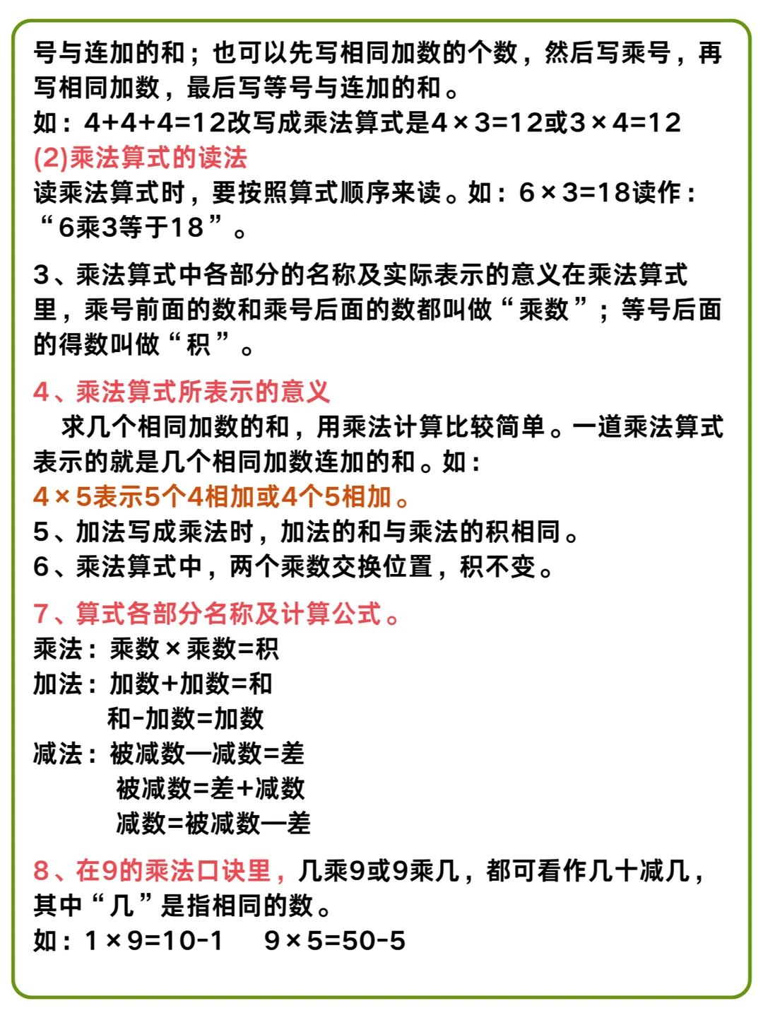 2️⃣、知道乘法的含义和乘法算式中各部分的名称,熟记全部乘法口诀,熟练地口算两个一位数相乘。