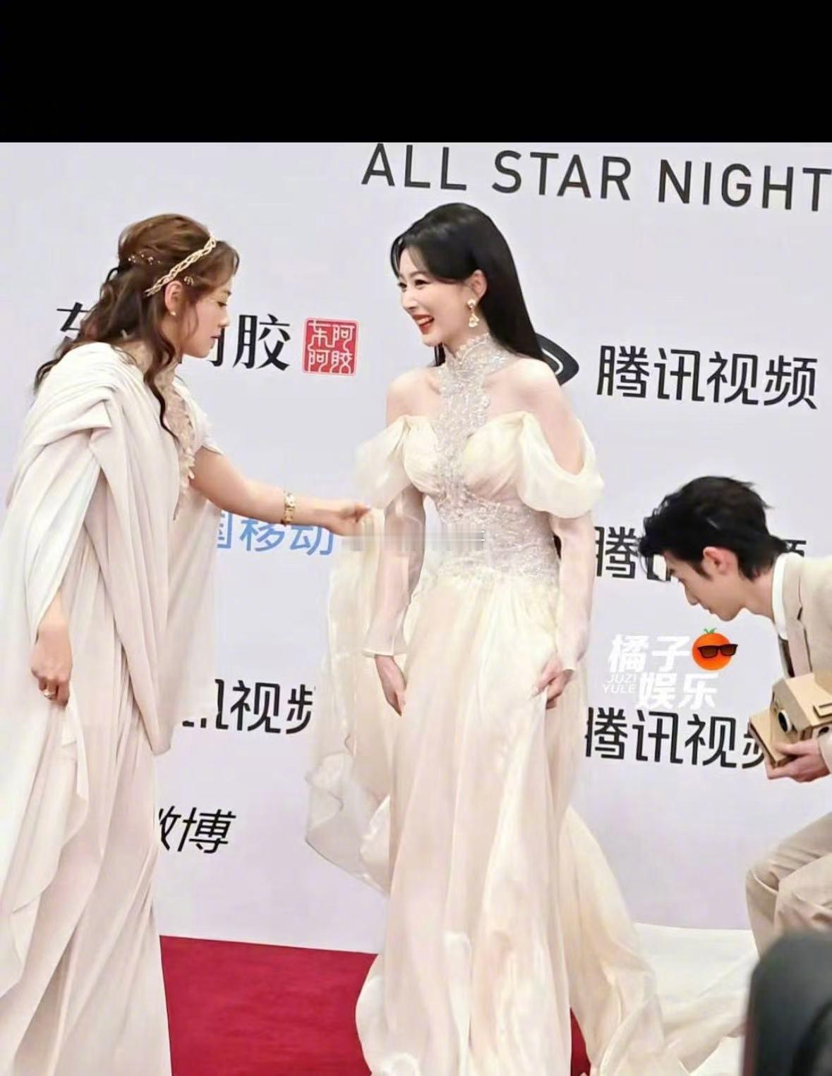高圆圆旁边这是谁啊??身材好好啊,就是这个裙子的布料……