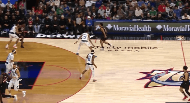 埃奇库姆观察:转换冲击,接球处理&单挑,挡拆处理——快攻奔袭&转换冲击图1,76人快发底线球,前场的VJ接马克西上球炸球调整后高举球起欧洲步,随后近框起跳迎着两人将球托进篮筐,打进2+1。图2,VJ无球跟进快攻和麦凯恩形成前场2打1优势局面,麦凯恩合球点飞布威后立即内传内给跟进的VJ,VJ接球后直接起跳双手扣篮得手。图3麦凯恩持球推进快攻,VJ先是站外线拉开,见麦凯恩面对PJ的退防没有获得终结机会后立即启动空切上前接应,接麦凯恩在油漆区的“Flip"调整好脚步后直接侧身起跳,躲过篮下PJ的协防,滞空转身拉杆挑篮。图4先防下弗拉格随后抓下篮板球直接持球推动反击,前场1打3,合球后欧洲步直接过掉马绍尔,随后起跳拉杆挑篮得手。——接球后续处理&单挑图5持球过半场交球给队友,无球弧形跑位到左侧底角。接球后立即使用刺探步调度防守人重心,随后启动右路突破。第一步没能摆脱防守人,行进间沉肩对抗后前脚蹬地迅速衔接撤步后仰中投。图6背身起手接球后转面框,清空一侧单打克里斯蒂:刺探步衔接前脚的挖步佯装启动右路突破,实则背转身向中路行进,与此同时球换到左手,左手炸球的同时完成横向上步,随后出手滞空后仰中投,打进2+1。——挡拆处理图7接格莱姆斯的“Flip”后立即衔接和博纳的挡拆配合,借助博纳的掩护摆脱克里斯蒂后见加福德选择沉退,直接右手悬浮合球急停出手持球三分,打成3+1。图8和庄神的挡拆发起,行进间“人质运球”(hostage dribble)将弗拉格卡在身后,随即变向二次加速借助庄神在内线设置的“戈塔特掩护”直杀篮下,起跳滞空转身挑篮躲过PJ的协防打进。图9持球操刀的“西班牙挡拆”(Stack)克里斯蒂的换防慢了半拍,VJ直接找到外弹的马克西。往期回顾网页链接网页链接网页链接NBA