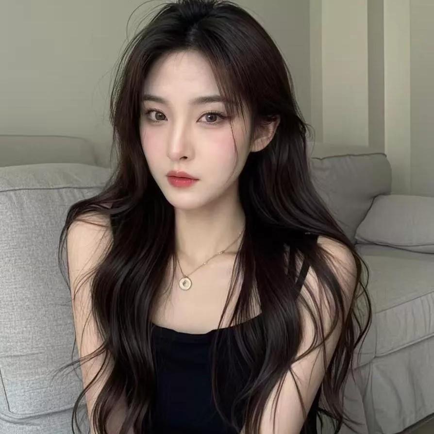 温柔甜美的黑发少女,坐在舒适的沙发上,散发着优雅与宁静。温柔美少女 温柔感美女 温柔气质美女 温婉长发少女 温柔长发少女 黑发女神 黑发辣妹