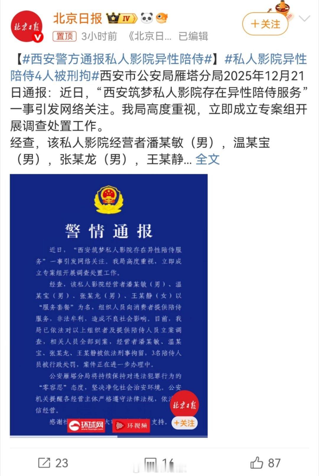 私人影院异性陪侍4人被刑拘典型的挂羊头卖狗肉。这种换个形式的陪侍服务,说白了也是属于组织卖淫和卖淫嫖娼。 这是违法犯罪 广州
