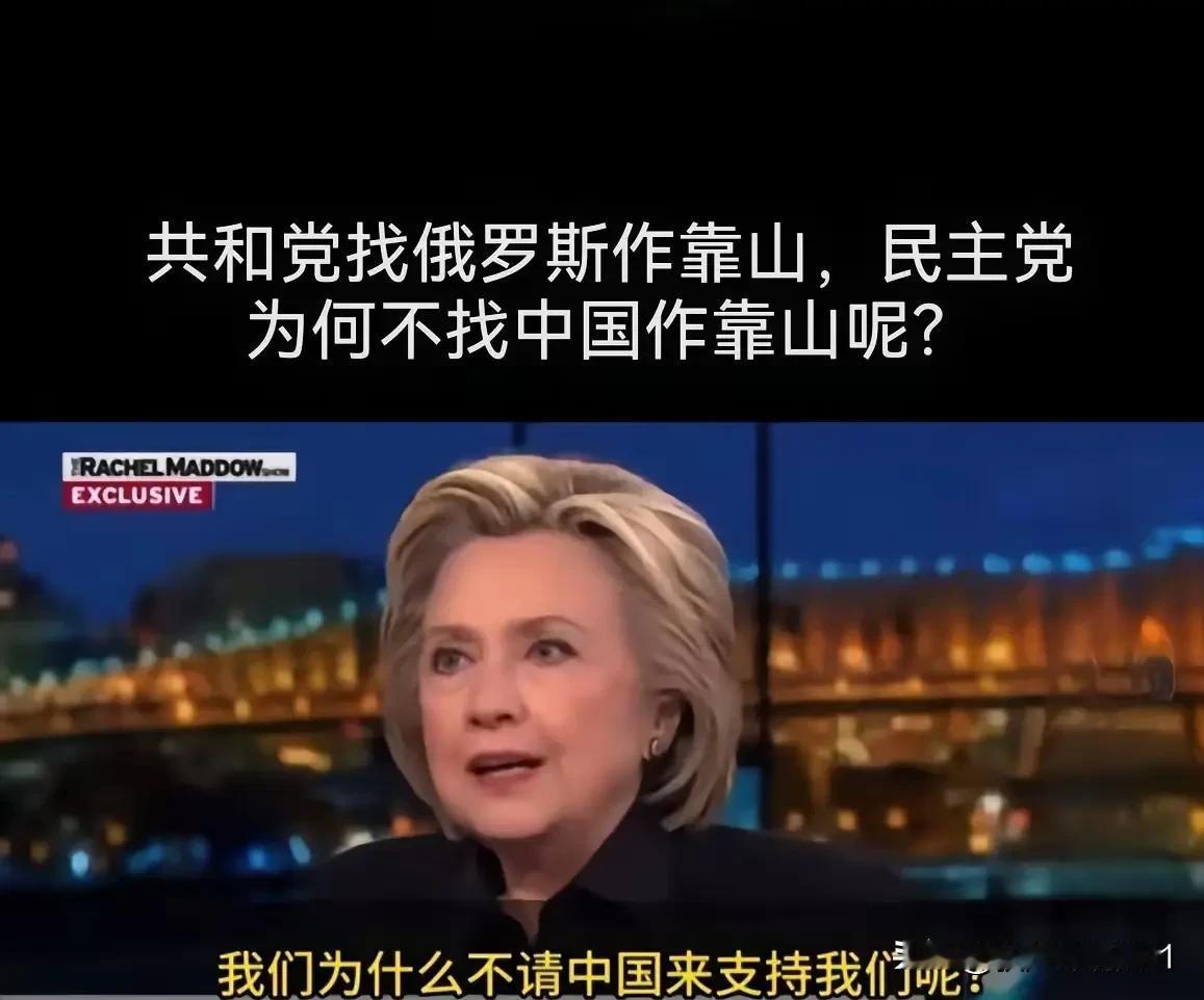 希拉里:民主党也可以找中国作靠山! 近日,美国前国务卿希拉里在一档