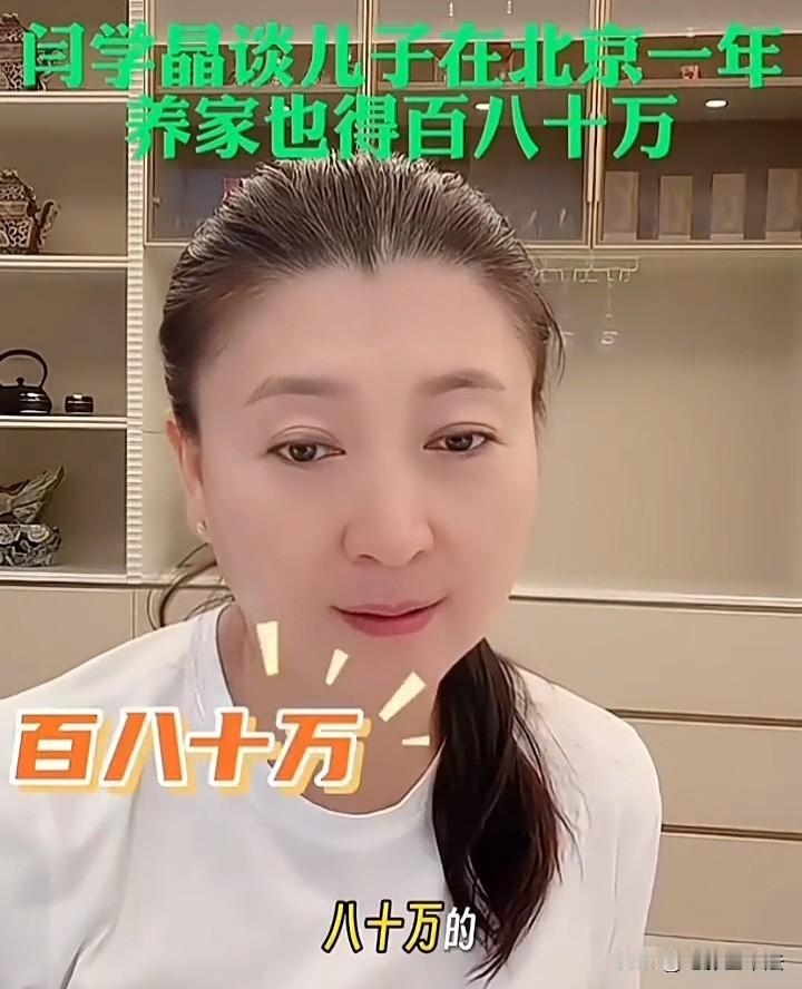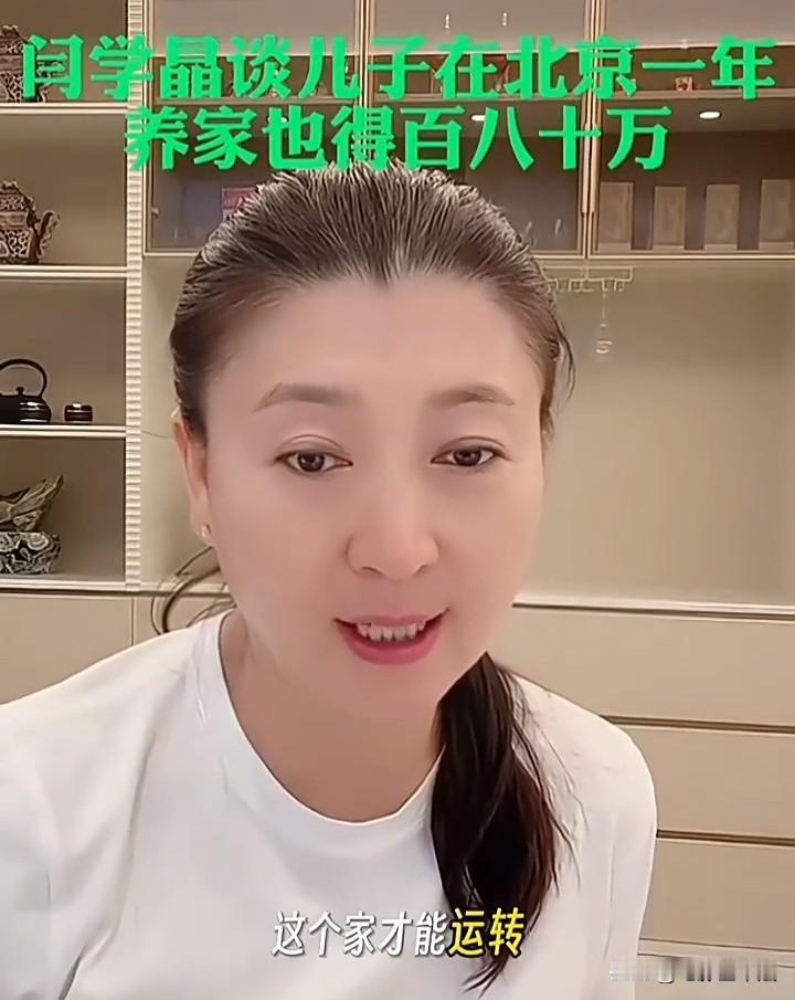闫学晶说她32岁的儿子一年才赚几十万,在北京根本维持不了家庭的基本运转。 闫学晶还说,她儿子一年起码得赚百八十万家庭才能维持下去,但儿子一年只能拍一部戏只能赚几十万,儿媳妇是音乐剧演员收入也不高,儿子要是还想演戏唯一的出路就是去横店闯闯。 不知道闫学晶这种人为什么总是喊没钱,按她的说法,北京绝大部分家庭都应该没法活了,毕竟年收入超过100万的家庭,即使是在北京占比也不会高,她儿子一部戏顶普通人全家一年工资了,在她眼里居然维持不了家庭。 而且闫学晶说这些的时候神态平静,显然在她眼里北京人一年赚不到100万维持不了家庭是真的,这和普通人的认知完全不同,所以不同的人虽然生活在同一片天空下,实际上根本不是生活在同一个世界。