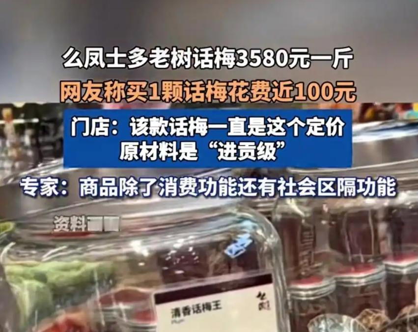 3580元一斤,单颗50-80元!香港老字号话梅引疯吵,是品质刺客还是智商税? 谁能想到,一颗话梅能卖到近百元?!香港60年老字号么凤士多的“清香话梅王”彻底火了,3580元一斤的定价把网友看懵,算下来单颗竟然要50-80元,咬一口堪比喝杯奶茶。 更有意思的是标价签——“358元”的字体超大,“50克”却小到不显眼,不少人吐槽这是“故意误导”。好在多地市监部门认定明码标价合规,但要求整改字体大小问题。 门店倒是理直气壮,说原料是稀缺的“进贡级罗光梅”,高山老树霜降后采摘,每棵树只产6-8颗达标果,还要纯手工蜜渍、日晒180天,定价一直没涨过。 这下舆论直接分成两派:有人觉得稀缺原料+古法工艺值这个价,愿意为品质买单;更多网友吐槽是“价格刺客”,调侃“吃的不是话梅是社交货币”,纯属智商税。 其实这事儿也暴露了消费分层:有人追求极致品质,有人看重性价比。不过话说回来,你愿意花80元买一颗话梅尝尝吗?