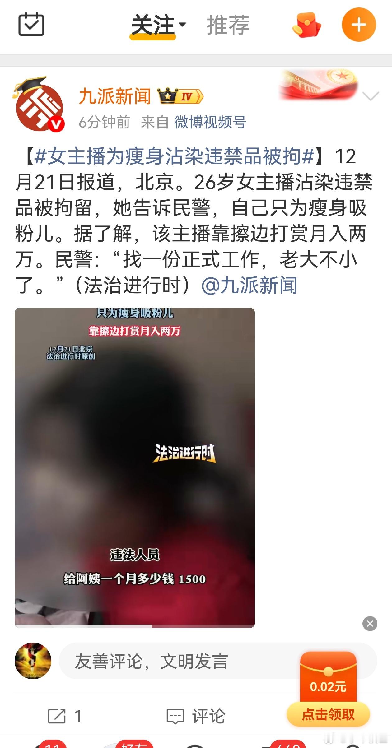 女主播为瘦身沾染违禁品被拘玛德,吸毒就是吸毒,毒品就是毒品,还“违禁品”,如今“吸毒”、“毒品”都不提了是吗?你大爷的!