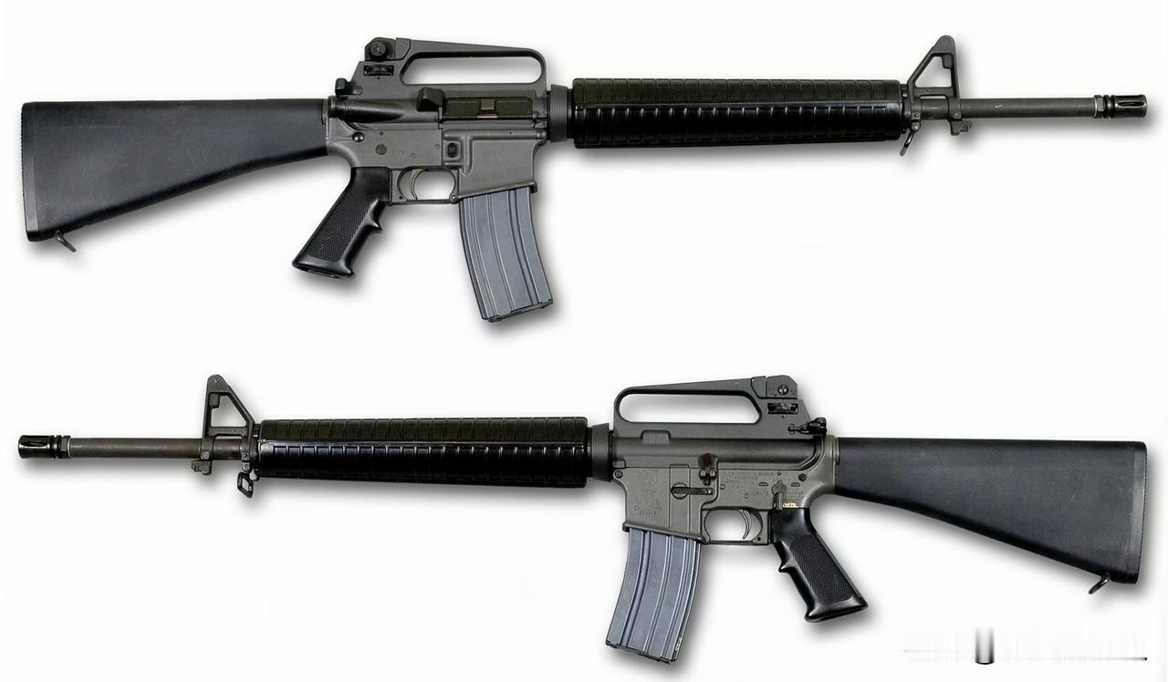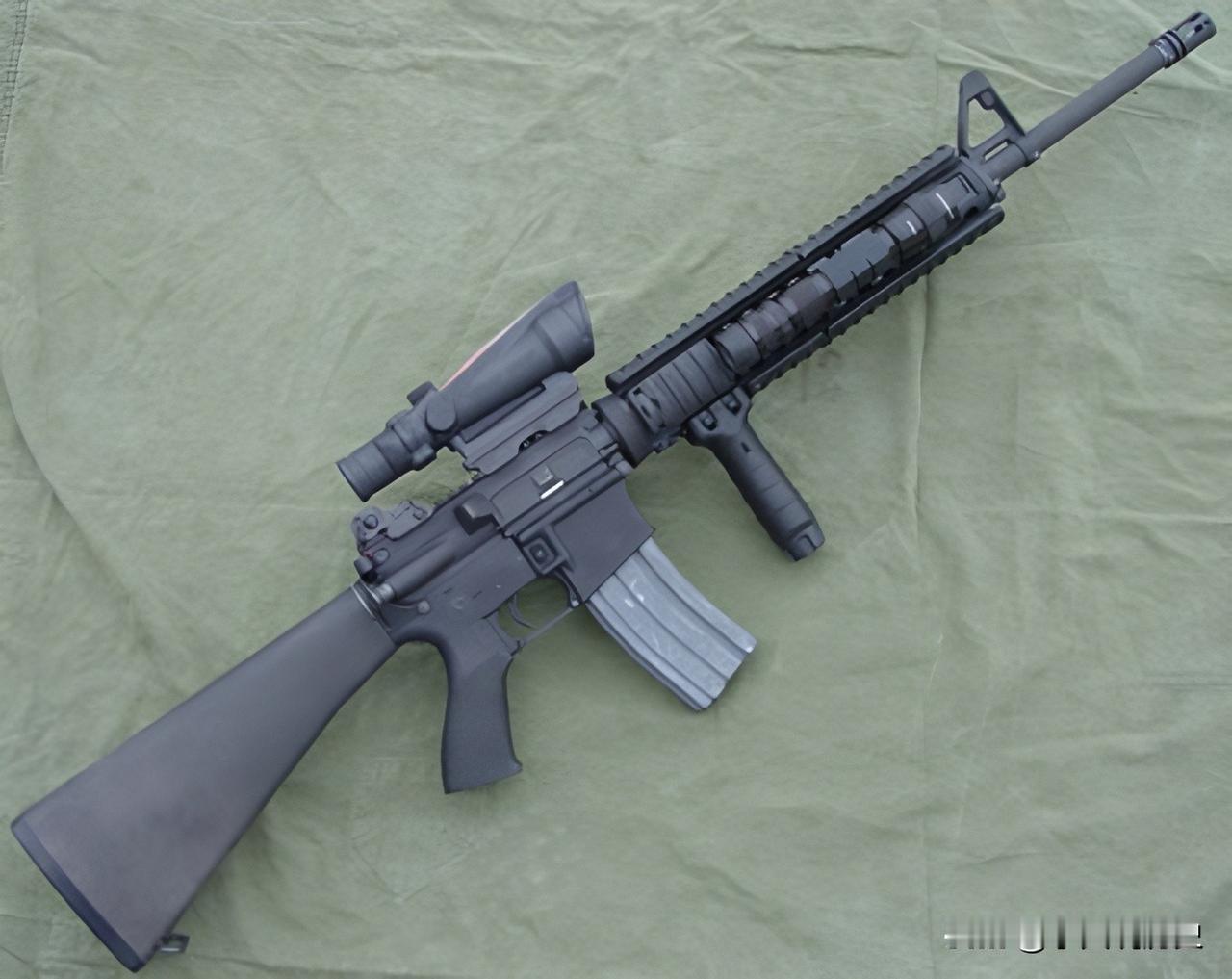 美国M16突击步枪 M16枪族属于突击步枪品类,发射的是北约制式5.56毫米枪弹