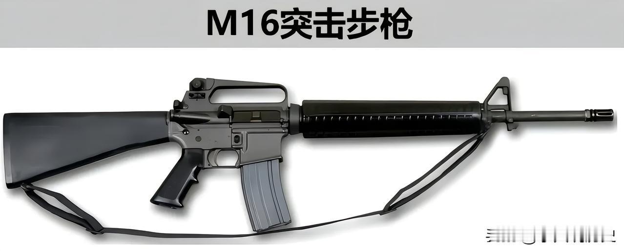 美国M16突击步枪 M16枪族属于突击步枪品类,发射的是北约制式5.56毫米枪弹。 自1967年起,它就成了美国陆军步兵的主力轻武器,被至少15个北约成员国采用,也是同口径枪械里产量最高的型号。 这款枪是美国军方给阿玛莱特AR-15改进而来的武器赋予的编号。 它的上下机匣用铝合金打造,枪管和枪机组件为钢制材料,护木、手枪式握把和枪托则是塑料制品。 早期型号重量很轻,仅2.9千克,比上世纪五六十年代的7.62毫米战斗步枪轻便不少,就算和装满弹药后约5千克的AK步枪比,在重量上也更有优势。 M16是一款轻量化的5.56毫米突击步枪,采用气吹式导气系统,依靠高压气体通过导气管直接驱动枪机完成上膛和抛壳,使用弹匣供弹,整枪由钢材、铝合金和复合塑料构成。它还能切换射击模式,射手可以通过下机匣左侧的快慢机来调整击发状态。 基本规格 产地:美国 口径:5.56x45毫米 NATO 重量:3.26千克 有效射程:550-800米 最大射程:3600米 发射模式:半自动、全自动 类型:突击步枪 服役期间:1964—至今 长度:1000毫米 枪管长度:508毫米 弹匣容量:20、30发 射速:700-950发/分钟 主要型号:M16A1改进了前助推器和镀铬枪管,解决了早期卡壳问题,依然保留全自动模式。 M16A2引入了三发点射模式,增强枪管和瞄准具,提升了精度和耐用性,取消了全自动射击。 M16A4增加了皮卡汀尼导轨系统,支持战术附件安装,仍采用三发点射和半自动模式。