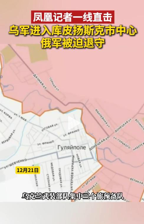 12月21日,战地记者卢宇光前往库皮扬斯克地区采访,他说,乌军集结了三个预备队的兵力,突破俄军在市区的防线,攻入了库皮扬斯克市中心,俄军被迫退守到奥斯科尔河东岸继续展开防御行动。 前几天,乌总统泽连斯基曾经到库皮扬斯克入城口自拍打卡,打卡地还能听到附近轰隆隆的炮击声。