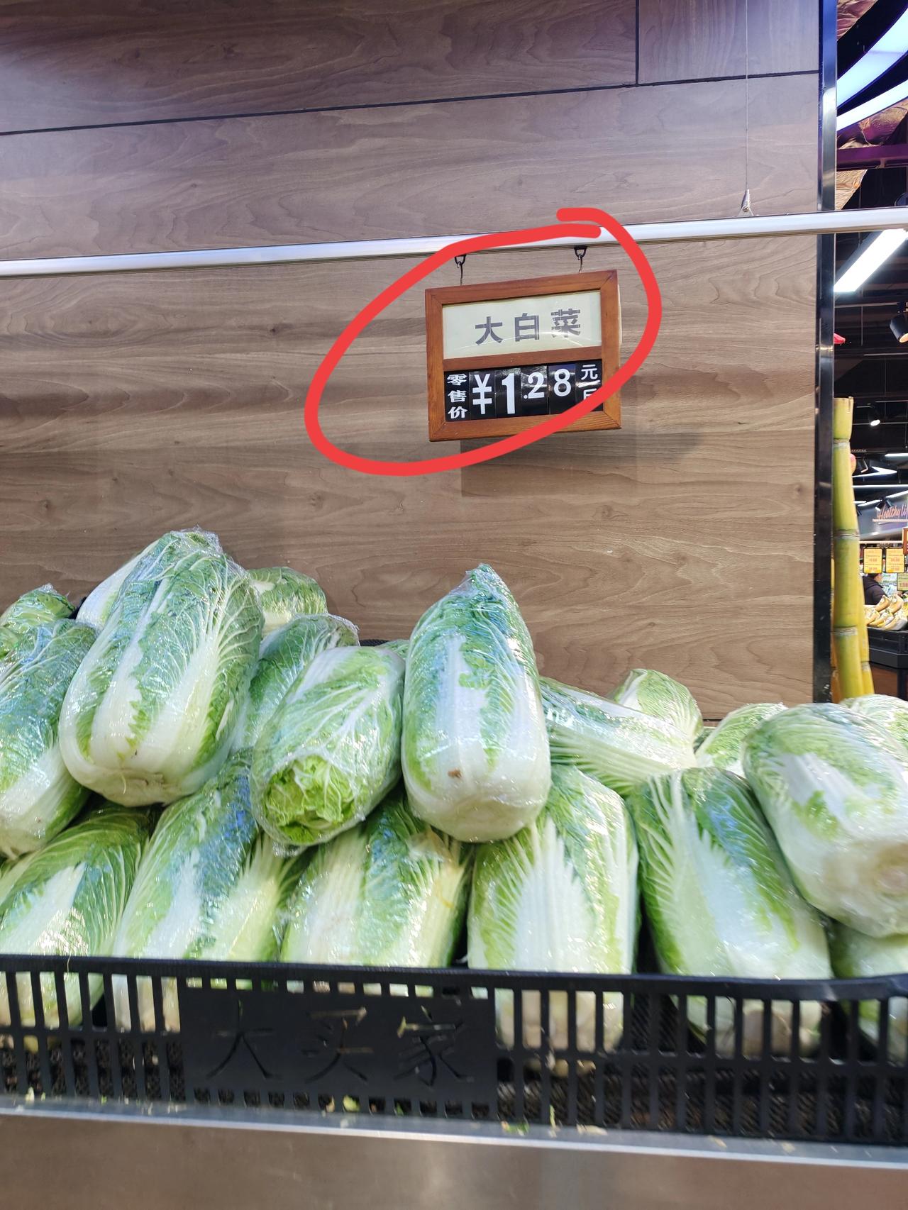 一个比天气预报还要准的信号 12月22日,陕西西安。今天我留意了一下本地市场上的白菜价,发现网友说的没错。 上星期我分享了本地的白菜价格,有网友在评论区建议囤点货,白菜会继续飙升,我不以为然。 今天我看了附近的两家超市,第一家价格1.68元1斤,第二家1.28元1斤,第三张图片是路边早市价格1.5元1斤。 看来网友说的对,白菜价齐刷刷的飙升了,上星期集市上的白菜一元1斤,超市里的白菜活动价1斤六七毛。但这一周全部上升至一元以上,那种水灵灵比较新鲜的白菜价不会低于1.5元了。 以前北方冬天没有这种情况,白菜永远都是托底的亲民菜,今年看来情况有变,当下的情况看,东北酸菜,韩式辣白菜应该也会水涨船高吧。 大家说说看,你们当地这几天的白菜是什么行情呢?