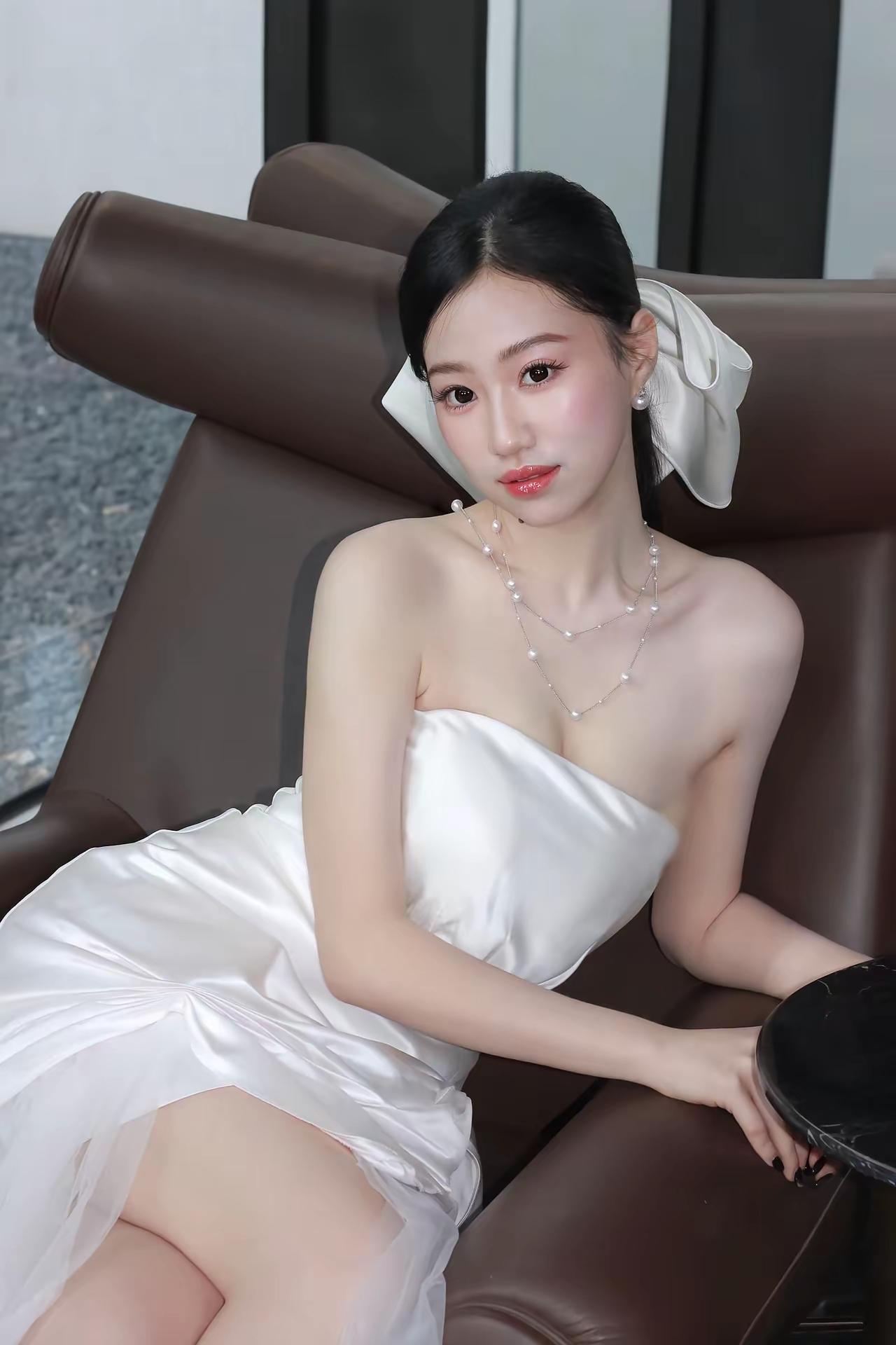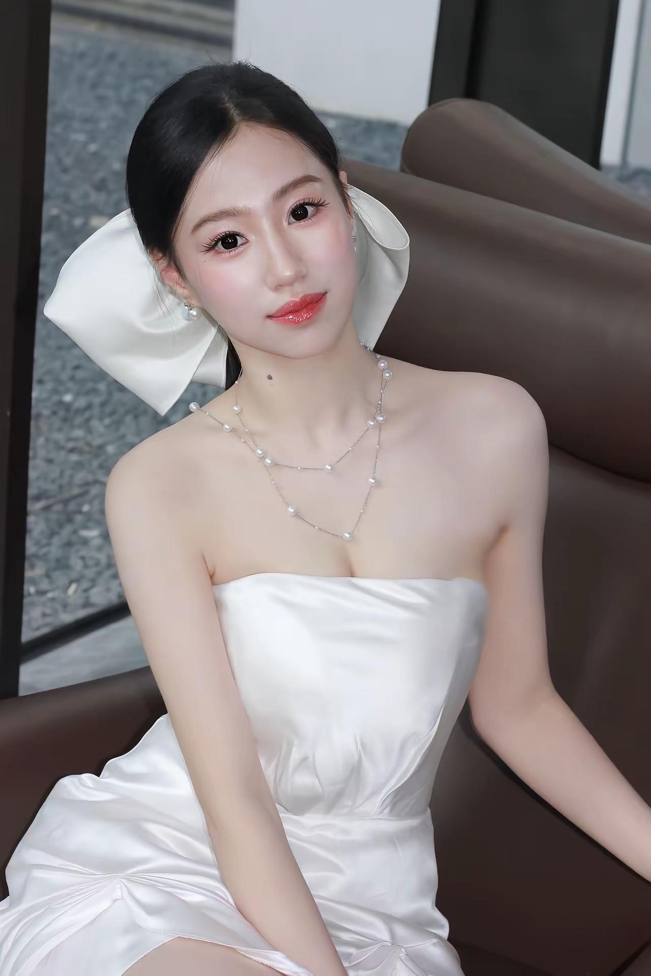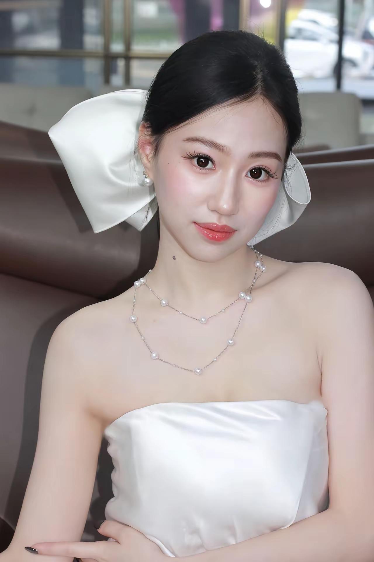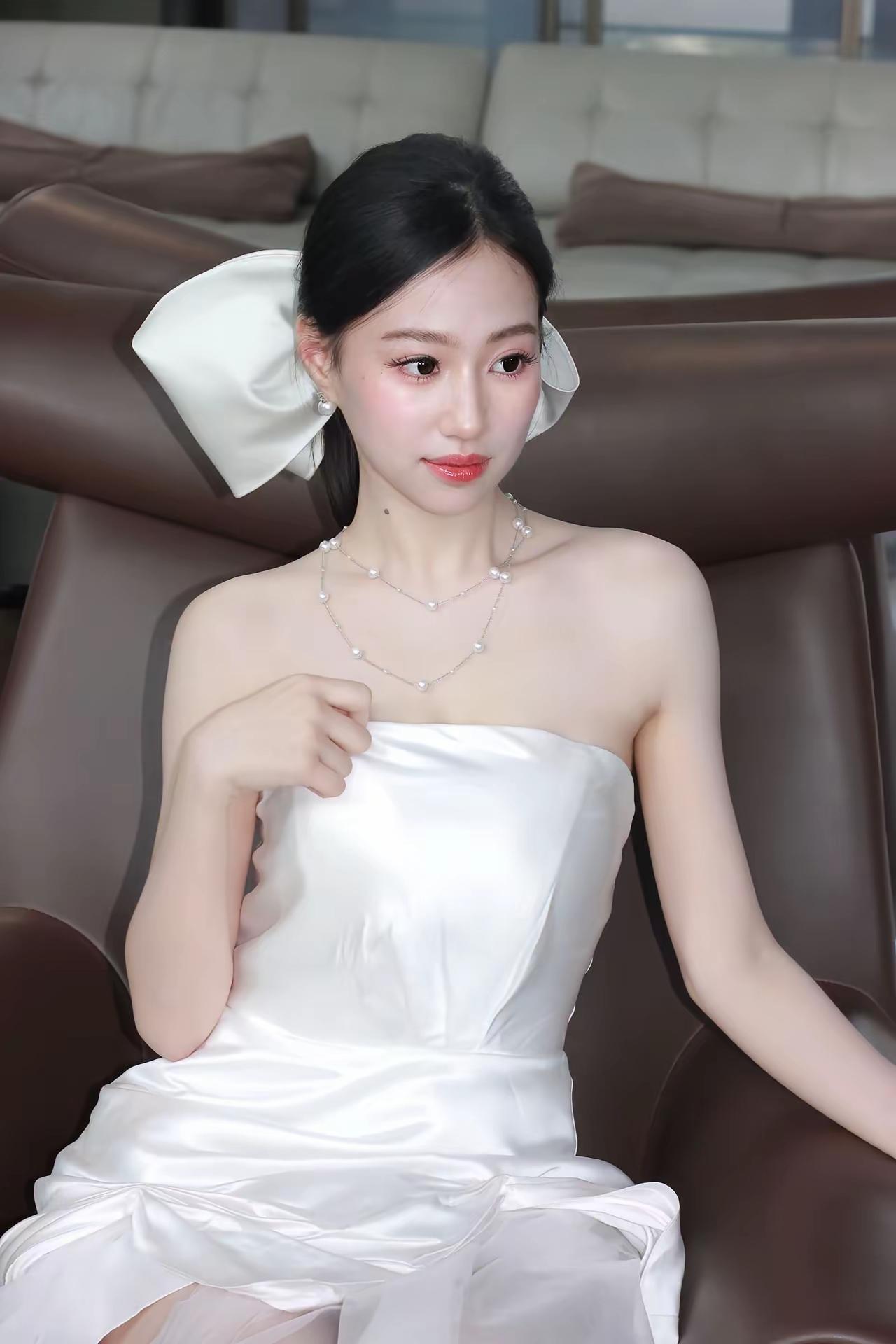 优雅白裙少女,珍珠项链点缀,温柔气质满分💖
