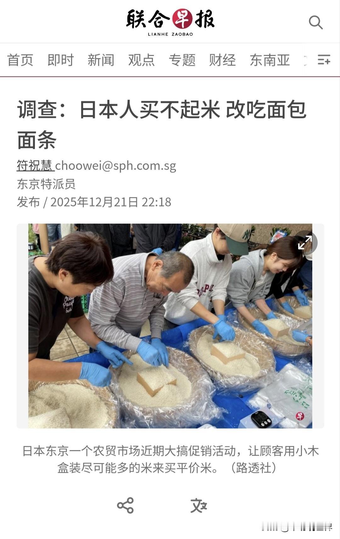 外媒报道日本物价飞涨民众连大米都难以消费。 网友们津津乐道的大久保公园现象就是日本现在经济低迷的缩影,大部分日本民众并不认同高市的错误言论。 对于高市早苗政府而言,如何摆脱国内日益增长的高通涨和经济低迷,而不是穷兵黩武的去持续扩张和发展军力。