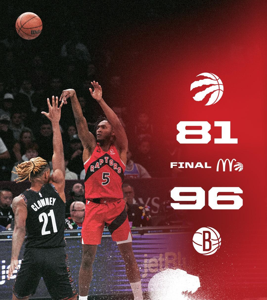 猛龙致敬科比,老鹰公牛不设防? 东部刚结束的2场比赛挺有意思,一场狂打铁,一场飚高分。 公牛队152-150险胜老鹰队,单看这比分,一般想到是加时了,或者是全明星赛。 虽说现在的NBA是进攻的时代,但一场比赛通常也就120分左右,这没打加时、不是全明星赛都150分了。 两队的命中率也是真的高: 公牛全队92投53中,三分42投20中,投篮命中率57.6%,三分命中率47.6%。要是罚球命中率高一点,公牛都能拿160分了。这场比赛,公牛全队罚球39投26中,罚丢13记。 球员里面,公牛队的奥科罗7投6中,布泽利斯11投10中,简直就是“弹无虚发”。 输掉比赛的老鹰队命中率同样不低,全队98投51中,三分47投23中,投篮命中率52%,三分命中率48.9%。 相比公牛与老鹰的精准,猛龙和篮网队互敬打铁。 猛龙队81-96不敌篮网,看到这比分,还以为是21世纪初的比赛,两队得分都不过百。其中,猛龙队仅得81分,也是本赛季倒数第二低的,仅次于之前快船的79分。 这场比赛,猛龙全队86投32中,三分36投10中,投篮命中率37.2%,三分命中率27.8%。 猛龙队的英格拉姆18投7中,巴恩斯10投3中,奎克利16投5中,谢德7投1中,迪克6投1中。 篮网队命中率还是好点,全队75投35中,三分35投14中,投篮命中率46.7%,三分命中率40%。 按说篮网的防守并没有那么强,大概只能是猛龙球员自己手感不佳了。 猛龙81分,刚好是科比曾经面对猛龙单场砍下的得分。 #冬日生活打卡季#