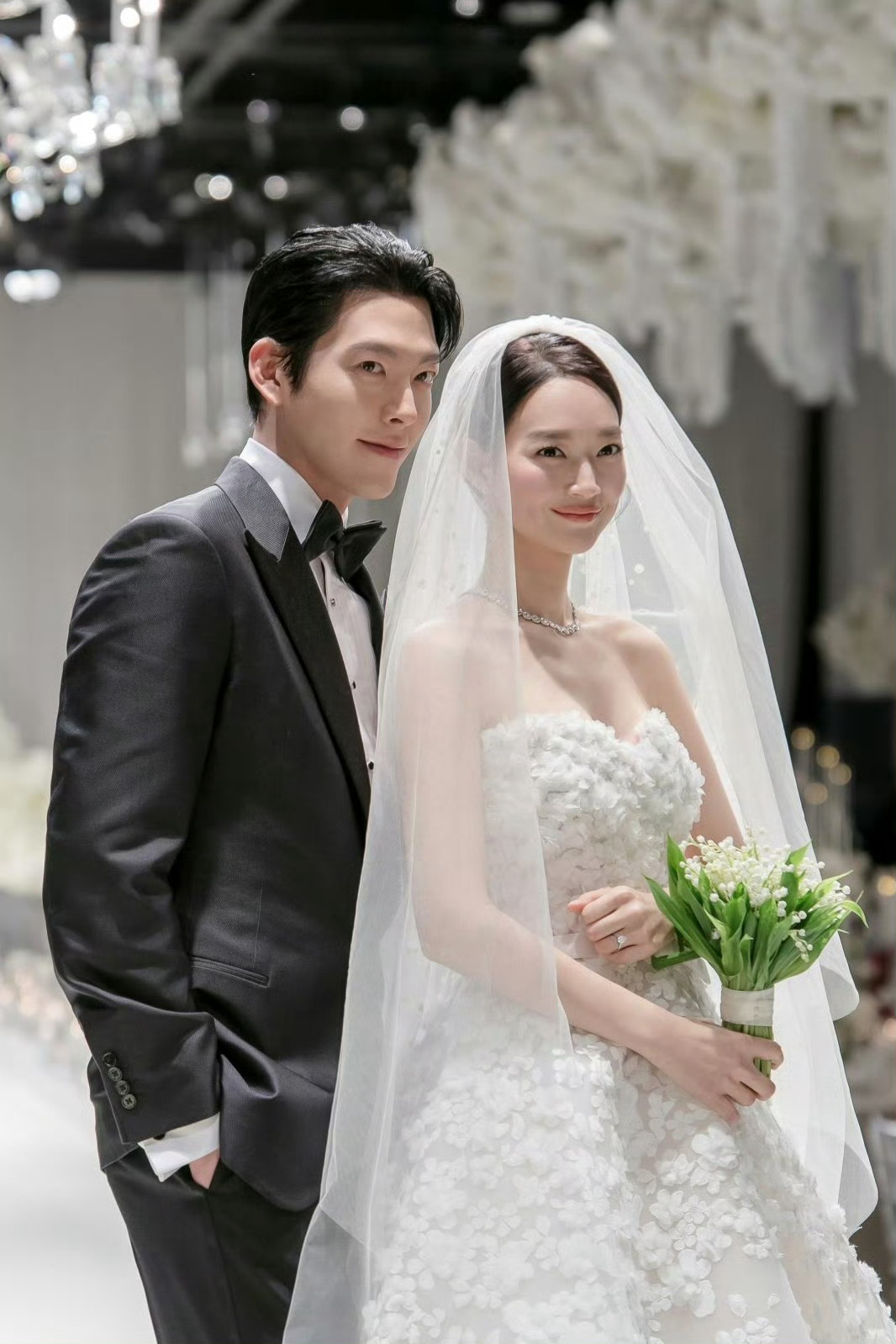 金宇彬申敏儿结婚照公开,好幸福!天哪两个人这个眉眼立体度顶光打下来好标准的