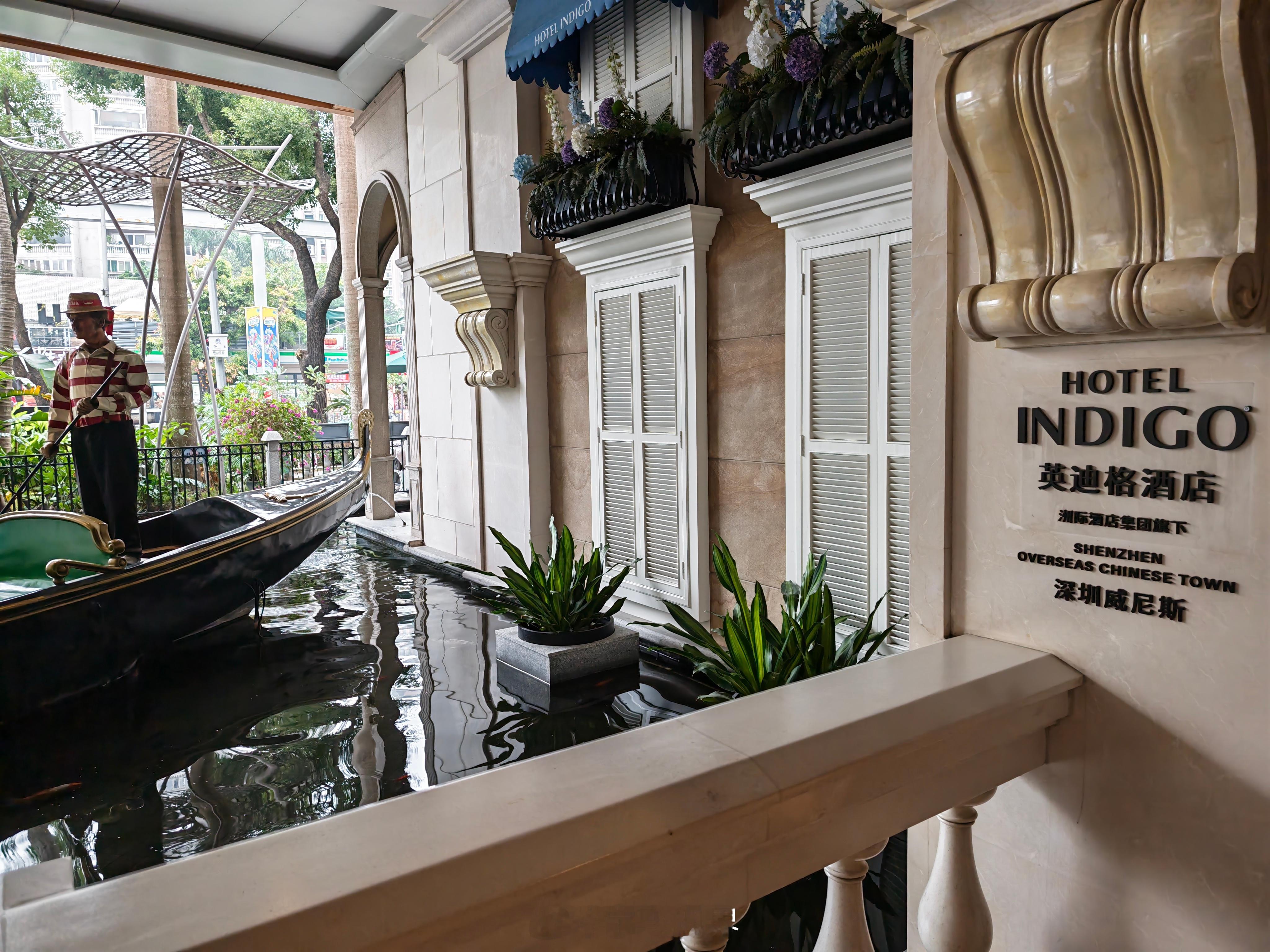这酒店好梦幻,门口有船,里面有桥。出门就是欢乐谷和世界之窗 深圳·深圳威尼斯英迪格酒店