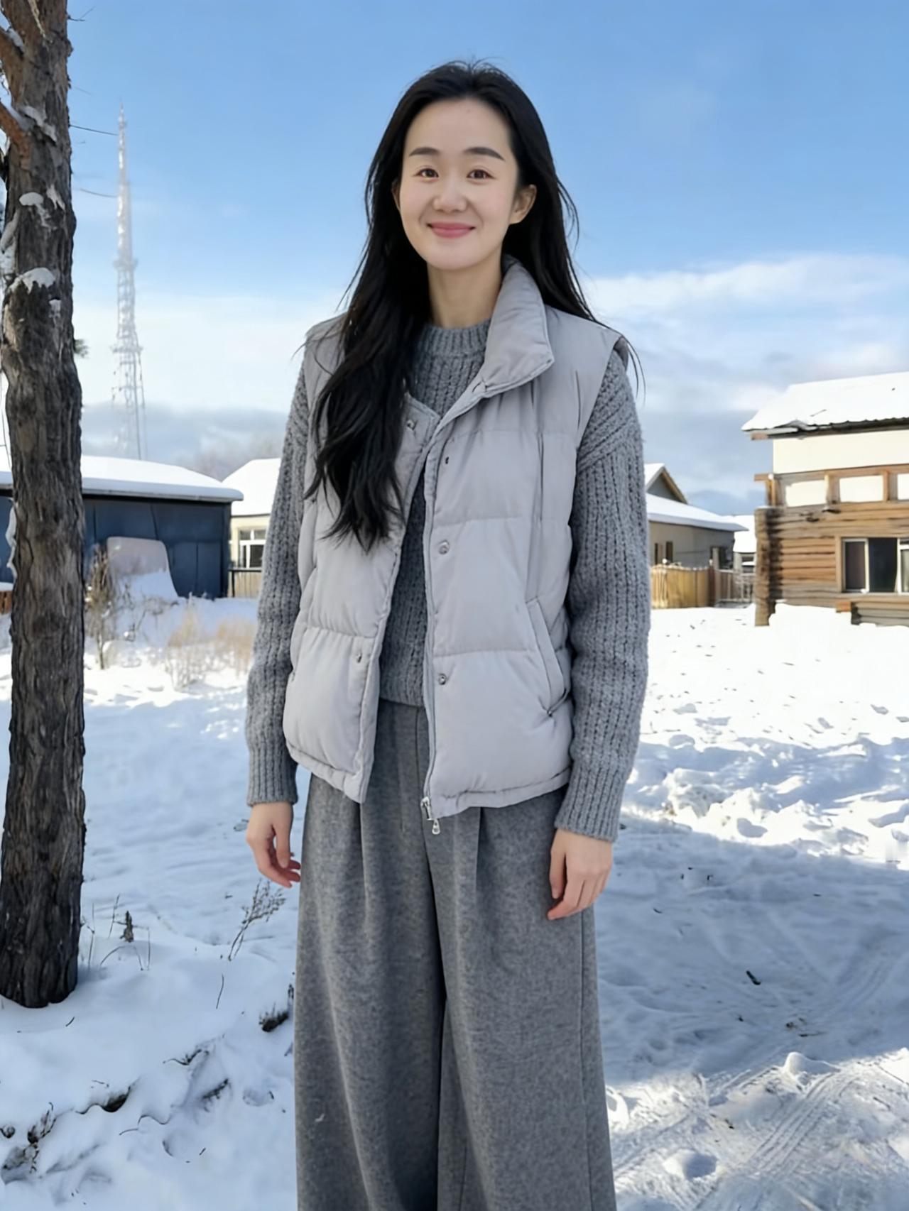 雪把天空磨成了浅蓝 树桠挑着未化的白,木屋蹲在风里 她站着,像一块温软的云 落在素白的褶皱里 ~ 风掠过发梢,带起细碎的雪粒 她站成一幅画,笔触淡得刚好 像冬日的茶,温吞,却能暖透 整个飘雪的午后