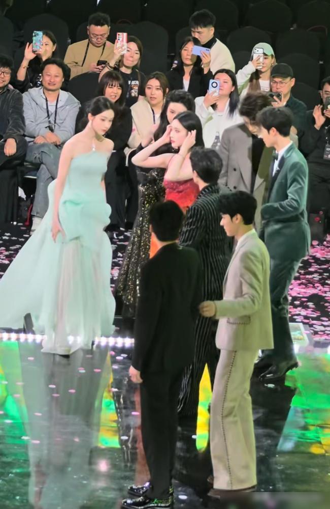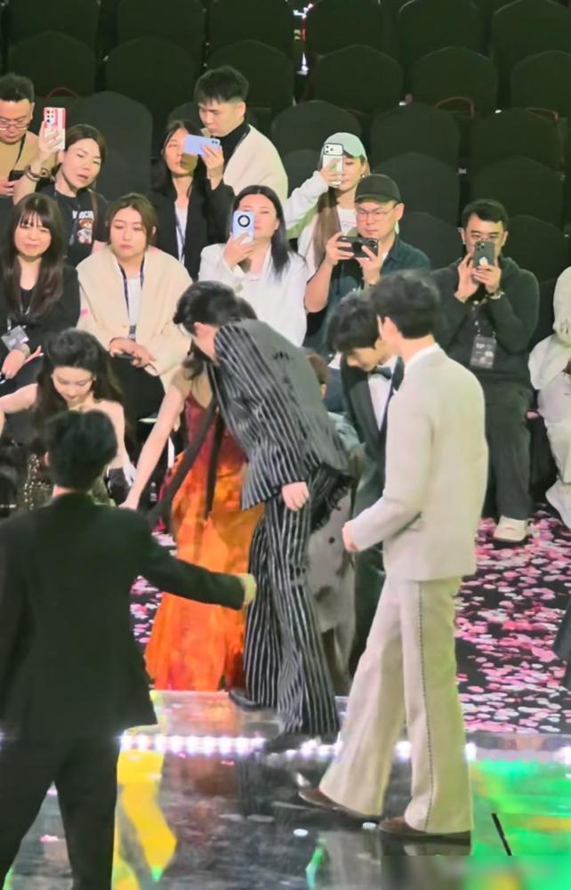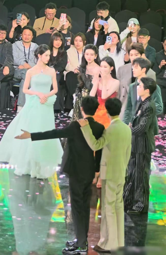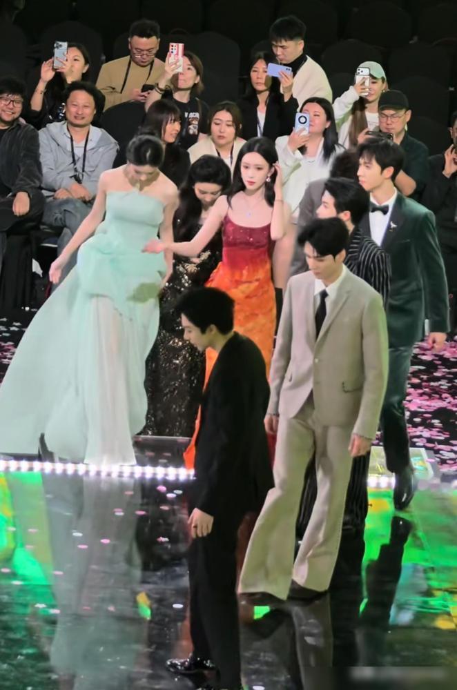 12月22日,孟子义上台,3个男的搀扶!李昀锐2年都没拉上的手,大哥一把就拉住了,檀健次先上台,转身看向孟子义,果断伸手拉住了她的手腕! 在刚结束不久的这场盛典红毯上,孟子义因为穿着巨大的礼服上台不便,结果身边的合作搭档们全员开启了“护航模式”。 我发现李昀锐这次又是慢了半拍,好不容易挤上去想扶一把,结果发现“大哥”檀健次已经精准锁定了孟姐的手腕。 其实最戳我的细节是丁禹兮,他没有去挤前面的位置,而是默默跟在身后护着,这种全方位的安全感真的绝了。 感觉大家这种下意识的反应,大概是因为孟姐平时性格确实好,连旁边的龚俊都一脸想帮忙却插不上手的样子,全员都是热心肠。 特别喜欢这种群像画面,孟姐一边和宋祖儿手拉手找姐妹支撑,另一边被一群大帅哥簇拥着,简直是红毯名场面。 我更在意的是这种自然的氛围,完全打破了那种为了镜头明争暗斗的刻板印象。 这种没商量好的默契互助,比任何刻意安排的互动都显得更有温度。 说实话,这种充满了人情味的内娱瞬间,真的百看不厌。