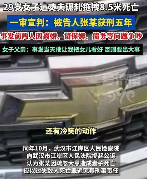 湖北武汉,女子和丈夫发生争吵,两人先后下楼,随后悲剧发生:男子开车碾压拖拽妻子8.5米,导致妻子死亡。男子说是妻子自己钻进车底,躺在地上,地下停车场光线暗,自己没看到,不小心碾压了妻子。事发后男子因过失致人死亡罪被提起公诉,可女子父母怀疑女婿不是过失,而是故意,因为事发当天女婿放下狠话:不看好女儿,会出大事。该案历经4年,目前一审法院宣判:男子犯过失致人死亡罪,判处其有期徒刑5年。 案发当天,武汉阴雨绵绵。女子甘某与丈夫张某因家庭琐事发生激烈争吵。争吵并非第一次出现,但当天情绪明显失控。 邻居后来回忆,争执声从屋内持续了不短时间,夹杂着摔门和哭喊。争吵过程中,张某曾情绪激动地说出一句重话,大意是“你爸妈要是再不管你,早晚要出大事”。 这句话在当时并未引起外人注意,却在悲剧发生后,成为甘某父母心中无法释怀的关键细节。 争吵结束后,夫妻二人先后下楼。张某先行进入地下停车场,准备驾车离开;甘某随后跟下楼。地下停车场灯光昏暗,监控画面清晰度有限。 几分钟后,一辆车在停车场内启动、行驶,随后发生了令人震惊的一幕——车辆碾压并拖拽了甘某约8.5米,最终导致她当场死亡。 事发后,张某第一时间报警并配合调查。他的说法始终如一:甘某情绪激动,自己并未注意到她的具体位置,在停车场光线不足的情况下,没看到她钻进车底并躺在地上,车辆起步后才发生碾压。 他强调自己并无伤害妻子的主观故意,是一起意外事故。 然而,甘某的父母无法接受这一解释。在他们看来,女儿不可能无缘无故躺在车底,更不可能在明知危险的情况下做出这样的行为。 他们认为,女儿与张某争吵后情绪失控下楼,很可能是想阻止丈夫离开,或继续争论,而并非主动寻死。 结合张某当天说过的“会出大事”的狠话,以及车辆拖拽距离较长的事实,甘某父母怀疑这并非简单的过失,而是存在故意或至少放任结果发生的可能。 案件进入司法程序后,公安机关对现场进行了多次勘查,调取了地下停车场的监控录像,并对车辆痕迹、刹车系统、行车轨迹进行了鉴定。 鉴定意见显示,车辆在事发时并未出现明显的急刹行为,行驶距离与监控画面基本吻合,但由于监控存在盲区,无法完整还原甘某进入车辆前后的具体动作。 检察机关最终以过失致人死亡罪对张某提起公诉。 公诉机关认为,张某作为车辆驾驶人,在地下停车场这种光线不足、人员可能出入的环境中,未尽到充分的注意义务,贸然启动车辆,对妻子的死亡结果存在重大过失,应当承担刑事责任。 但现有证据不足以证明其具有直接或间接的杀人故意。 庭审过程中,控辩双方围绕“是否存在故意”“甘某的行为是否异常”“张某是否应当预见危险并采取措施”等问题展开了激烈争论。 甘某父母多次出庭陈述,情绪激动地表示无法接受“过失”定性,认为这不足以还原女儿的死亡真相。而张某则在庭上数次哽咽,表示对妻子的离世深感愧疚,但坚称自己从未想过伤害她。 案件一审历经多次开庭、补充调查,时间跨度长达四年。最终,一审法院作出判决。 法院认为,根据现有证据,无法认定张某主观上具有故意剥夺他人生命的动机和行为,其行为符合过失致人死亡罪的构成要件。 法院同时指出,张某在夫妻矛盾激化、地下停车场环境复杂的情况下,未尽到高度注意义务,其过失程度较重,造成严重后果。 据此,法院判决张某犯过失致人死亡罪,判处有期徒刑五年。 宣判当天,法庭内气氛凝重。甘某父母当庭落泪,表示将继续通过法律途径维护女儿的权益;张某低头沉默,未作过多回应。 这起案件虽然在一审中有了法律结论,但围绕“过失”与“故意”的争议,围绕家庭矛盾如何一步步演变成无法挽回的悲剧,仍然留给公众诸多思考。 它不仅是一桩刑事案件,更是一场关于婚姻、情绪失控与安全责任的沉痛警示。