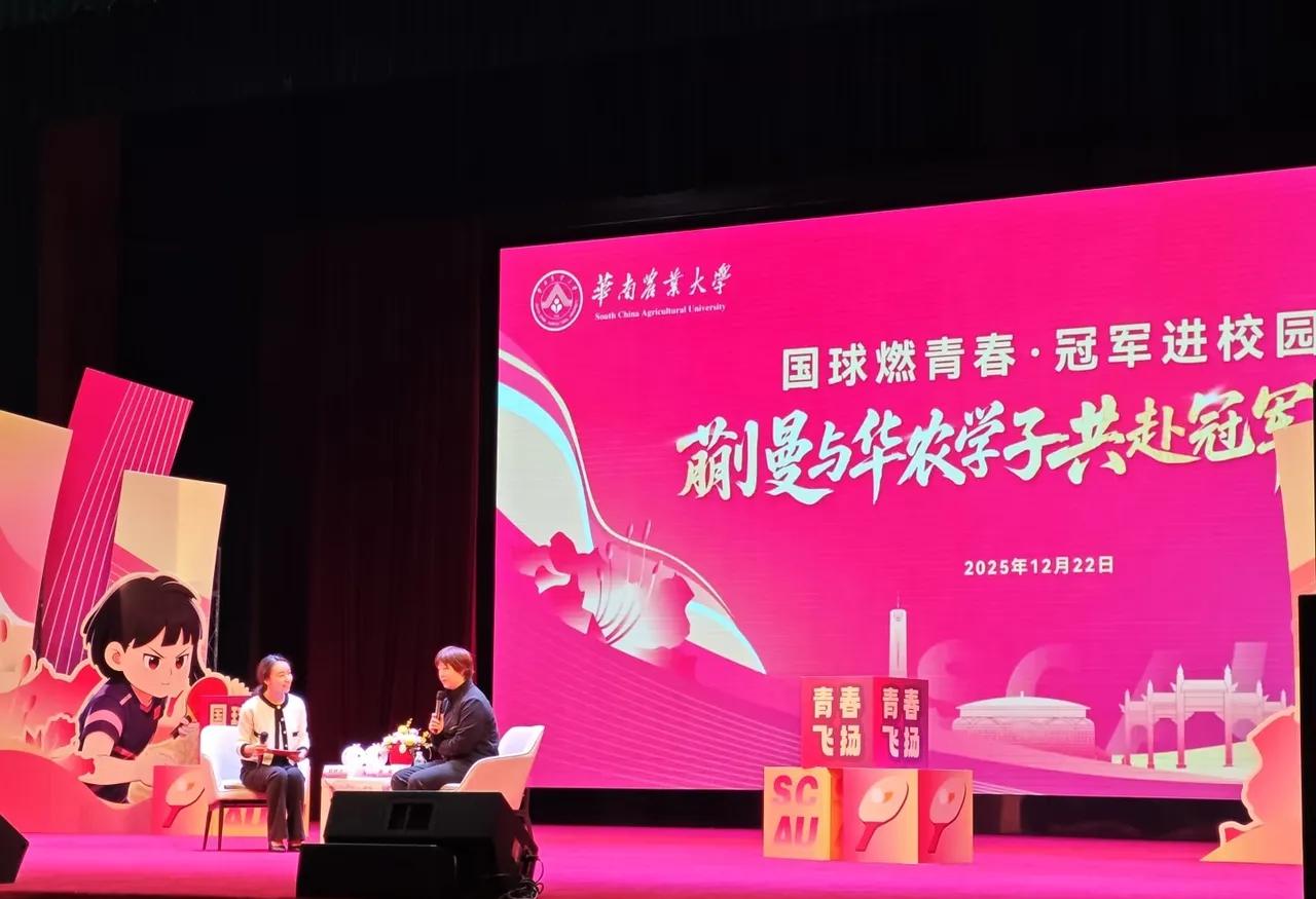 12月22日国乒主力蒯曼蒂妹妹一起出席华南农业大学的活动,妹妹比姐姐小很多但长的很像,妹妹也是练乒乓球的。 父母把姐妹俩都培养成乒乓球项目的人才,姐姐已经是青年组,成年组的世界冠军了,单打排名已经世界第三了,而且混双排名世界第一,女双排名世界第一,综合能力很强已经是国乒的绝对主力,超越了王艺迪和陈幸同,成了孙颖莎,王曼昱之后的3号主力[赞][赞] 妹妹的乒乓球打的也很好,姐姐就是自己的偶像,祝福她们都是父母的骄傲。