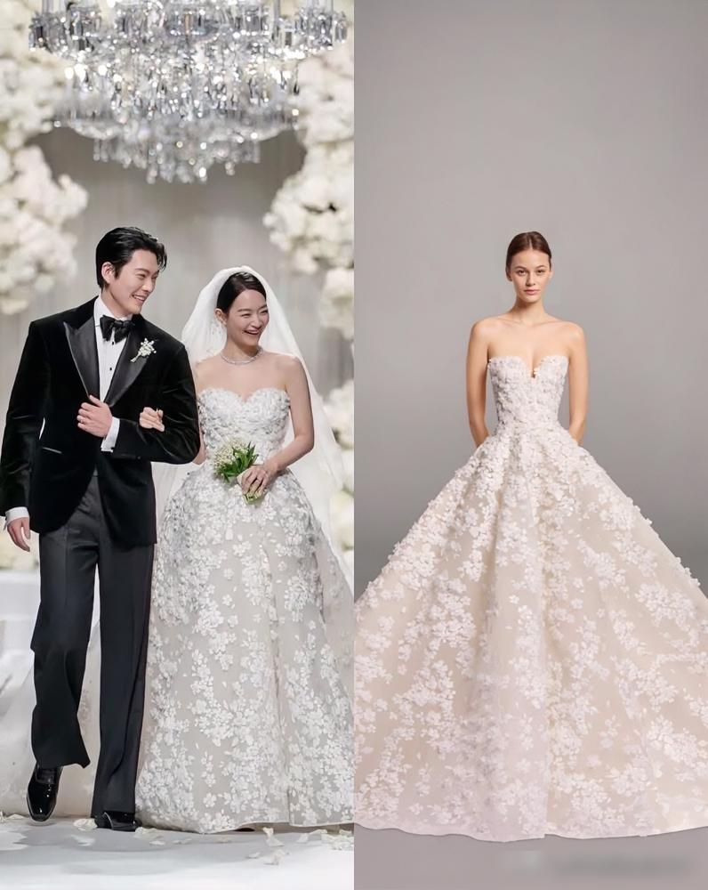 金宇彬、申敏儿绝美婚禮現場照公開!申敏兒身穿立體花瓣刺绣的平口婚紗,浪漫又優雅;