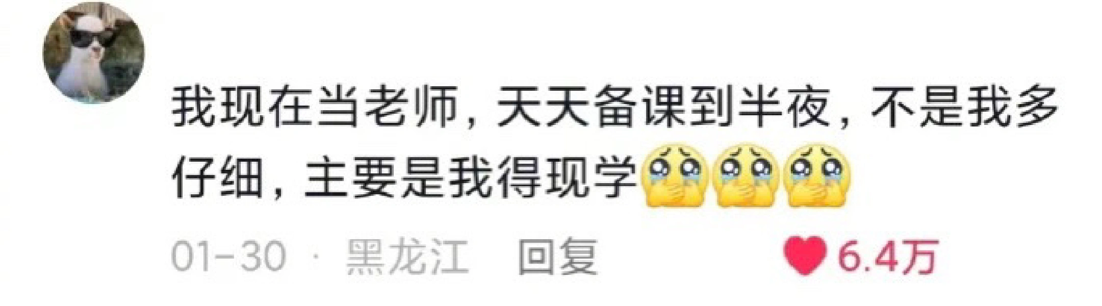 我现在当老师,天天备课到半夜,不是我多仔细,主要是我得现学