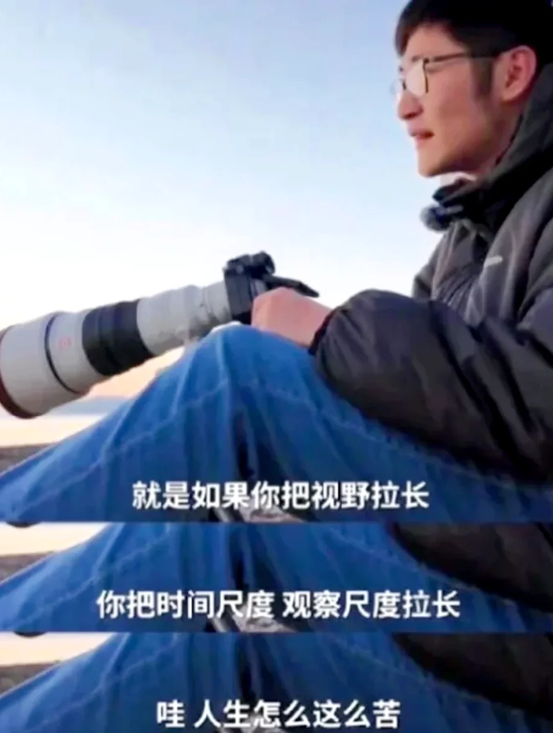 🙃就是如果你把视野拉长,你把时间尺度观察尺度拉长,哇人生怎么这么苦,全是很多很难解决的问题,不管是这个家庭关系,还是工作,然后人生的下半场,是诸如此类的,然后你会觉得很强的焦虑感,或者觉得不适,觉得哎呀未来好没有希望,特别难受。