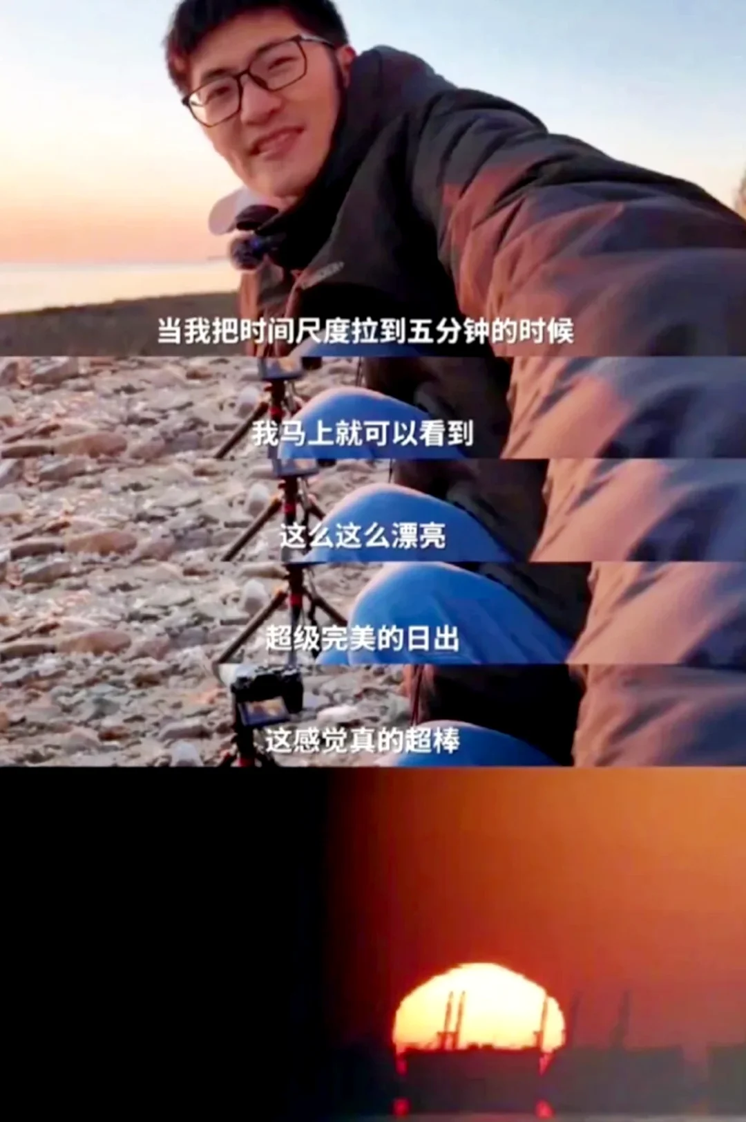 最后用Tim说的这句话与君共勉的:“当我把时间尺度拉到五分钟的时候,我马上就可以看到,这么这么漂亮。超级完美的日出。这感觉真的超棒”