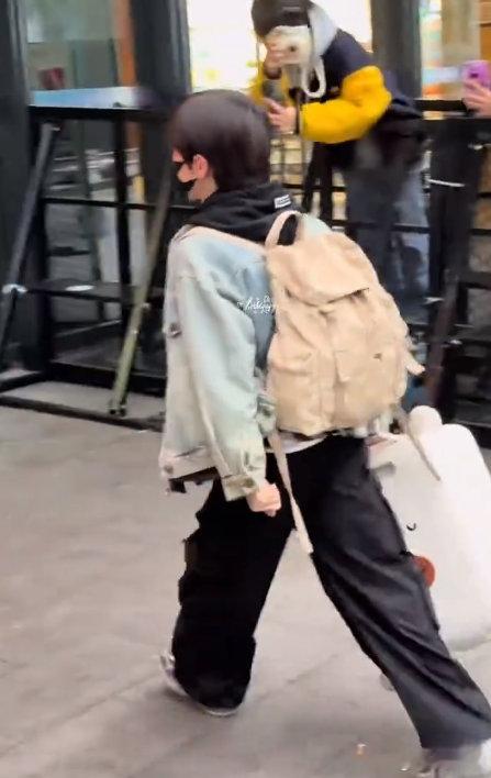 吴艳妮在成都穿着短裤大腿看起来很粗壮,表情自信又张扬