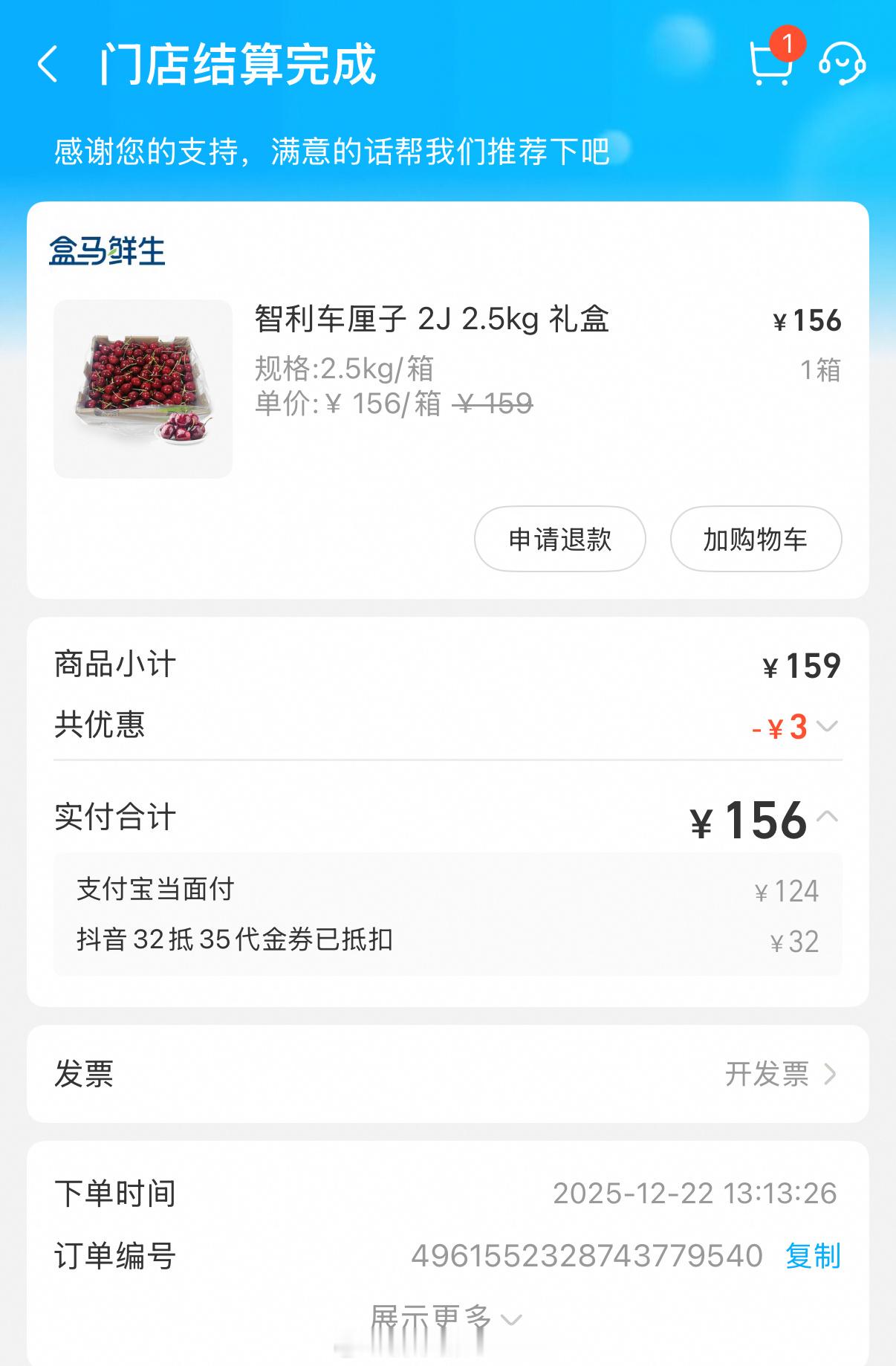 午休时间,吃饺子吃炸鸡,逛超市买了盒车厘子,现在车厘子的价格真的便宜,4J的也就是249