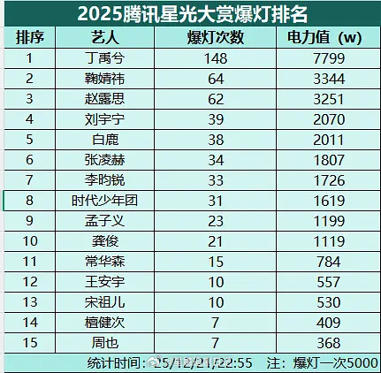星光大赏数据 2025星光大赏爆灯排名🈶