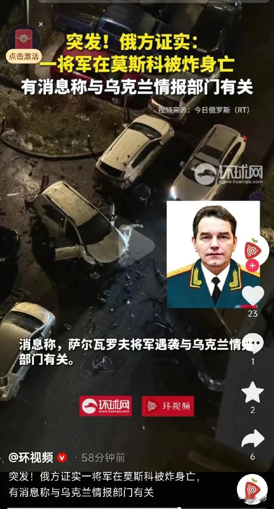 俄军官遇袭身亡! 12月22日,俄罗斯联邦侦查委员会通报,俄武装力量总参谋部作战训练局局长萨尔瓦罗夫中将在莫斯科南部遭遇汽车炸弹爆炸身亡。这起事件发生在莫斯科亚先涅瓦亚大街,爆炸装置被安装在汽车底盘下,萨尔瓦罗夫因伤势过重不治身亡。 俄方侦查委员会已经火速立案,经验丰富的调查人员直奔现场,查监控、问证人,把各种作案动机都筛了个遍。目前最核心的侦查方向很明确,就是怀疑乌克兰情报部门策划了这起谋杀。 萨尔瓦罗夫可不是普通将领,他管着俄军的作战训练,俄乌冲突里俄军的战术调整、部队备战,都离不开他的统筹。这样一位核心人物遇袭,对俄军的指挥体系来说,无疑是沉重一击。 这事儿绝非孤立,莫斯科早就成了暗杀频发地。2024年12月,俄三防部队司令基里洛夫中将,就是被乌克兰情报部门雇人用滑板车炸弹炸死的,手法和这次如出一辙。 更让人触目惊心的是,自冲突爆发以来,乌克兰特工在俄境内搞了数十起暗杀。2022年杜金娜的汽车爆炸、2023年塔塔尔斯基咖啡馆被炸,还有前潜艇艇长晨跑时遇刺,桩桩件件都透着血腥。 这些暗杀的套路都大同小异,找外籍人员当杀手,许诺10万美元报酬和欧盟居留权,用遥控炸弹或冷兵器动手,事后还高调宣称是“特别行动”,完全没把国际法放在眼里。 萨尔瓦罗夫遇袭的时间也耐人寻味,就在欧盟成立“乌克兰国际索赔委员会”后五天。西方一边冻结俄资产,一边默许乌方搞暗杀,这根本是在火上浇油,让冲突越陷越深。 莫斯科作为俄罗斯首都,安保级别号称全球顶尖。可现在,中将级别的高官在街头遭汽车炸弹袭击,说明俄境内的安全防线出现了漏洞,背后的隐患着实让人担忧。 这种暗杀行为根本不是战争该有的样子,而是赤裸裸的恐怖主义。它解决不了任何问题,只会激化矛盾,让双方的仇恨越来越深,和平谈判的大门也被越推越远。 各位读者你们怎么看?欢迎在评论区讨论。