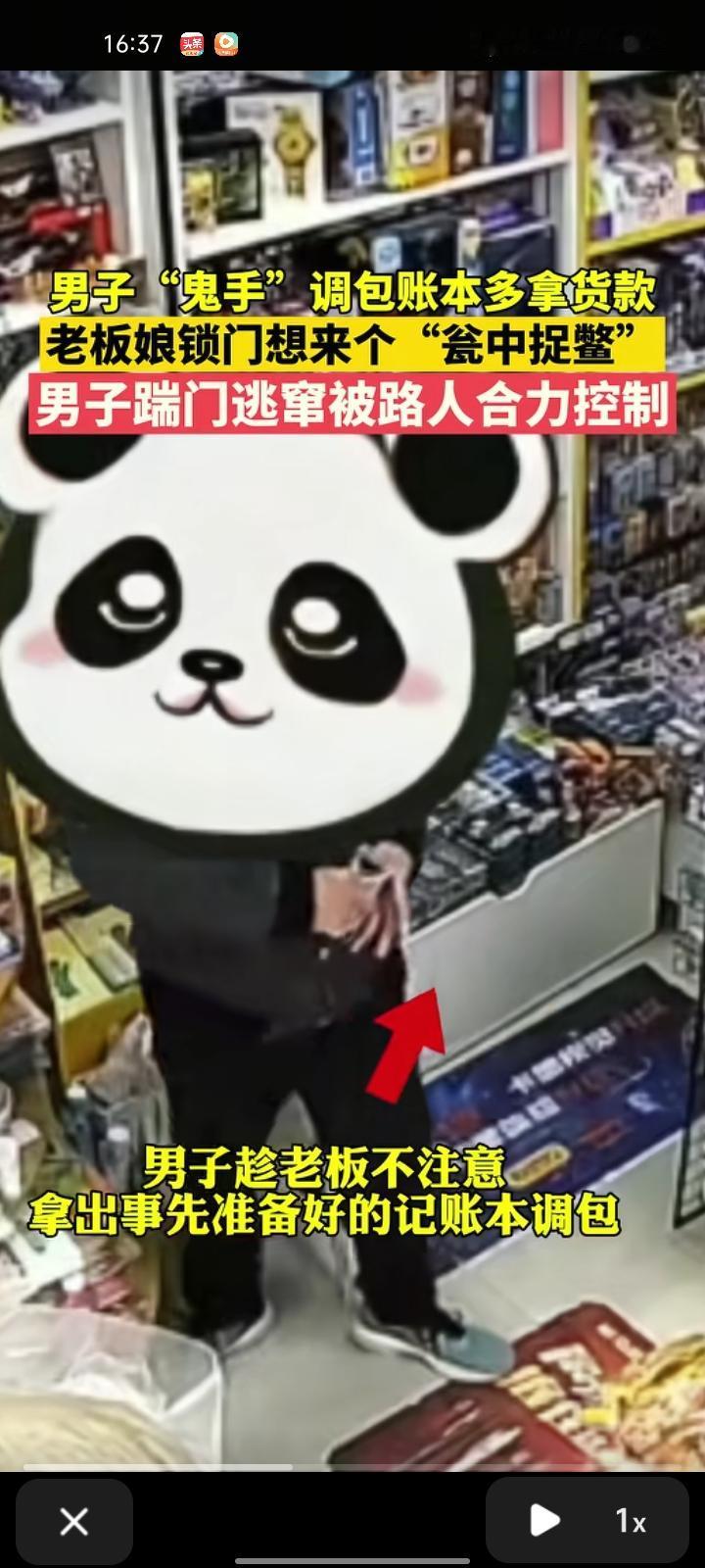 12月20日,浙江杭州。一位男子来到文具店向老板娘推销,说自己是供应商来供零食的,拿出小本子,上面记录着今天拿过来多少货多少钱,一页写满之后就和她结一次账。结果,男子趁老板娘不注意,偷偷把事先准备好的笔记本调包。 老板娘察觉到,中间的八行账单并不是自己真正拿的货,随后,老板娘上门想来个“瓮中捉鳖”,没想到男子力气特别大,一脚就把门踹飞逃走,老板娘也摔在地上,爬起来大喊“抓贼啊”,路人听到叫喊声就把男子控制住了,随后报警处理。