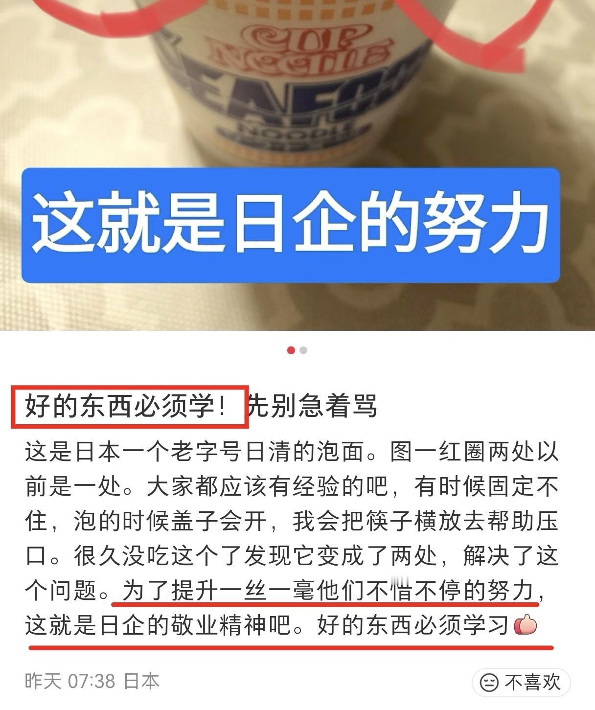 说实话,日本泡面盖有两个耳朵被日吹拿来表扬日本企业没笑,看到评论区聚集了一群日本ip集体拆台是真没忍住,如果是收了钱发这样的软文,有点太对不起甲方,如果是发自肺腑,那还真挺心疼这位活在二十年前的吹子,不但国内没人搭理他,连日本华裔都看不下去。