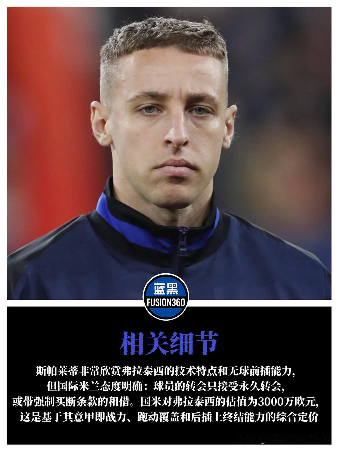 拒绝白嫖!国米对尤文铁腕亮剑:弗拉泰西只卖不租,3000万欧一分不少 冬窗还没开启,意大利国家德比的硝烟已经弥漫到了谈判桌上。面对尤文图斯对弗拉泰西的觊觎,马洛塔和奥西利奥的态度异常坚决:想从梅阿查带走这位意大利国脚?没问题,但请带着支票簿来,别想玩“先租后买”的把戏。 据天空体育报道,尤文图斯正在猛烈追求这位99年出生的中场悍将,斯帕莱蒂也非常欣赏他。然而,斑马军团提出的“租借”方案直接触碰了国米的底线。蓝黑军团的回应简单粗暴:NO! 为了防止直接竞争对手“空手套白狼”,国米划定了一条不可逾越的红线:弗拉泰西的离队方式只有两种——要么直接永久转会,要么租借+强制买断条款。任何不带强制性的租借方案,都会被直接扔进碎纸机。 至于价格,国米也给出了明确的心理价位:3000万欧元。对于一名当打之年的意大利国脚来说,这个价格在如今的市场上堪称良心,但也足以让财务吃紧的尤文图斯知难而退。 想用“白菜价”补强死敌的阵容?国米这次的硬气回应,你给打几分?如果在强制买断的前提下,你觉得3000万卖给尤文划算吗?国际米兰 💙🖤
