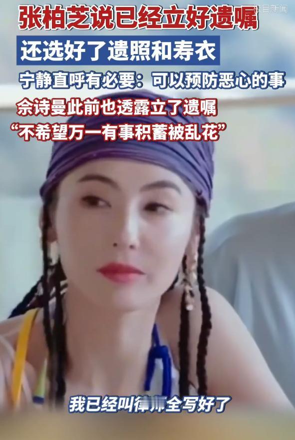 张柏芝在综艺节目里说。 她已经立好遗嘱了。 连遗照和寿衣都选好了。 她说不想看到。 自己走了以后。 大家为了钱吵架。 所以提前安排好了。 刘嘉玲听了觉得太早了。 但宁静挺支持她的。 有人说她这是。 母爱的顶级担当。 也有人说她太悲观。 但说实话。 谁也不知道明天。 和意外哪个先来。 提前规划好。 总比突然走了。 留下一堆烂摊子强 这种心态。 挺好的。