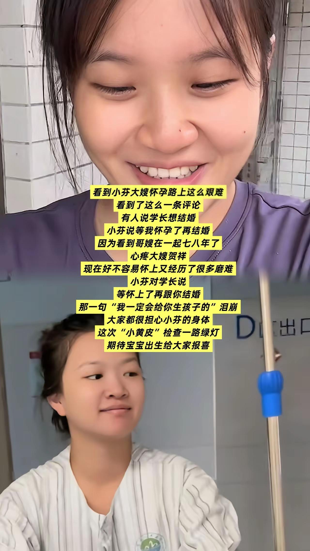 小芬和学长没有结婚,但他们都和结婚没有区别,就差一个婚礼了。小芬的怀孕让粉丝都兴奋不已,纷纷送去了美好的祝福。 现在怀一个宝宝太难了,好好休息,养好身体,再怀孕。 每对新婚夫妻,都想要一个爱情结晶,这样是自己的期待,也是大家庭的期待。 小芬的嫂子还在调理身体,身体因为宫外孕动了一个手术。还好还好,一切都会慢慢好起来的。 小孩该来就会来,别太担心!