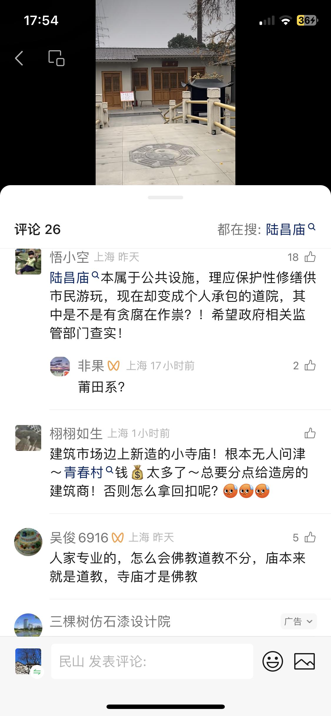 无论佛教还是道教,历史应该得到尊重。宗教场所理应有神圣和庄严。春申道院这篇文章的留言区有人说被私人承包了,不禁让人想起之前海外报道有富二代被打劫,最后一查父亲在国内经营道院发财。无论如何不能允许宗教场所商业化。不应有门票更不应该出现私人承包经营之类。但愿这一切都只是揣测,希望人们的宗教信仰有纯净的皈依。