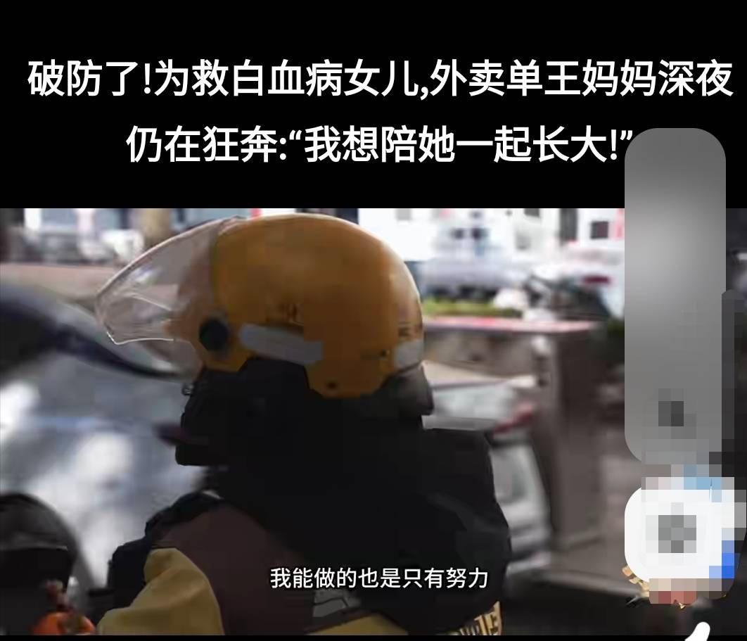 妈妈为救白血病女儿跑成外卖单王,凌晨4点的外卖单,是妈妈给女儿的“救命单”