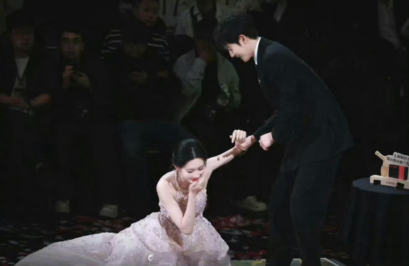 孟子义摔了后,扶着白鹿的丞磊手忙脚乱松开白鹿的手要过去扶孟子义摔了星光大赏内场星