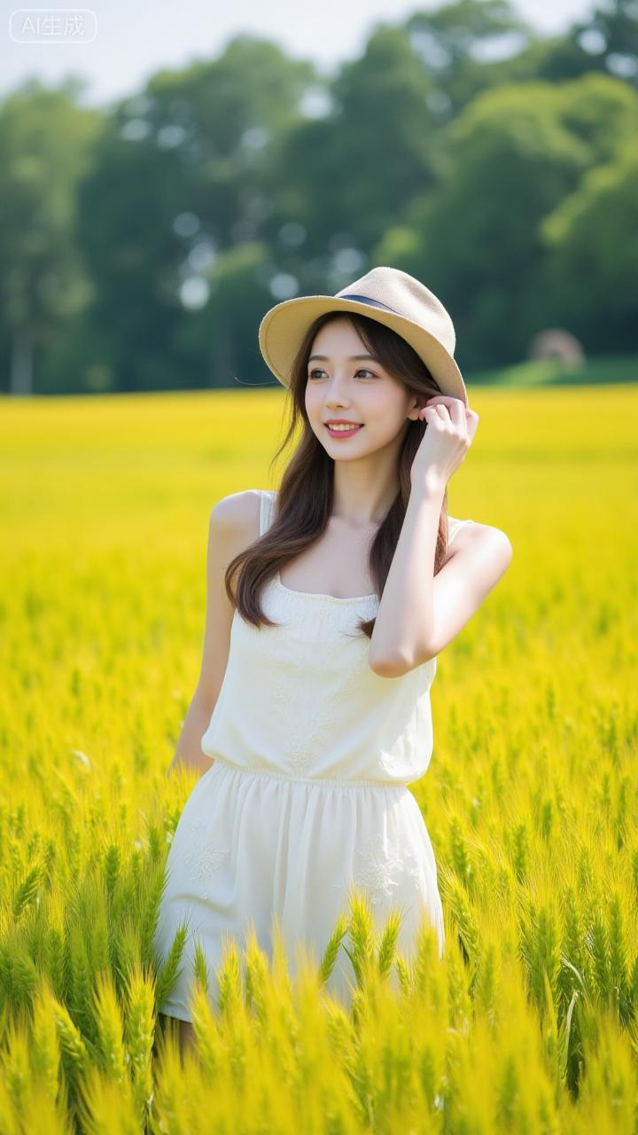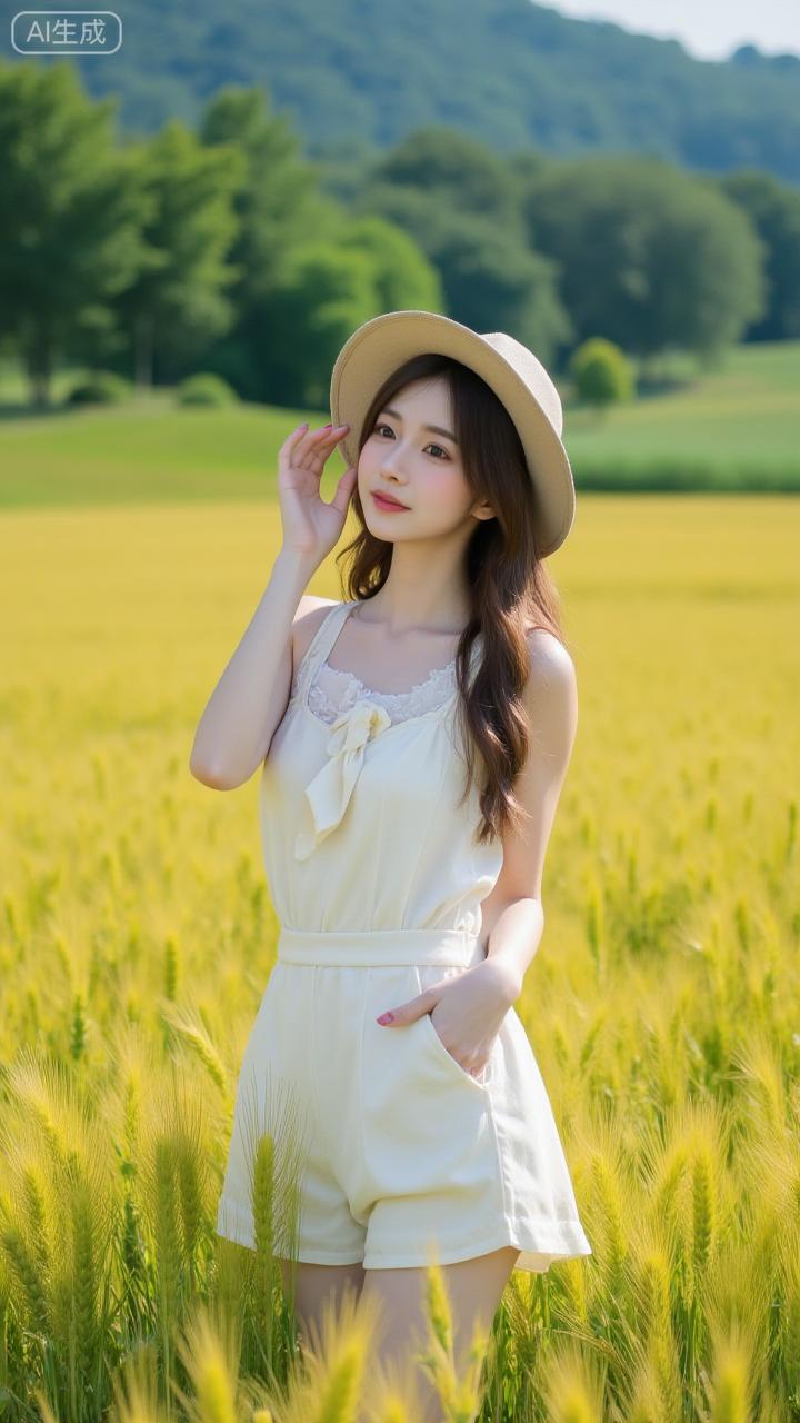 麦浪裹着金风的暖,白裙碰了草帽的甜,穗尖晃出夏野的软。连发丝都浸着田野的松弛。 麦田甜系穿搭麦田浅笑 稻田拍照穿搭