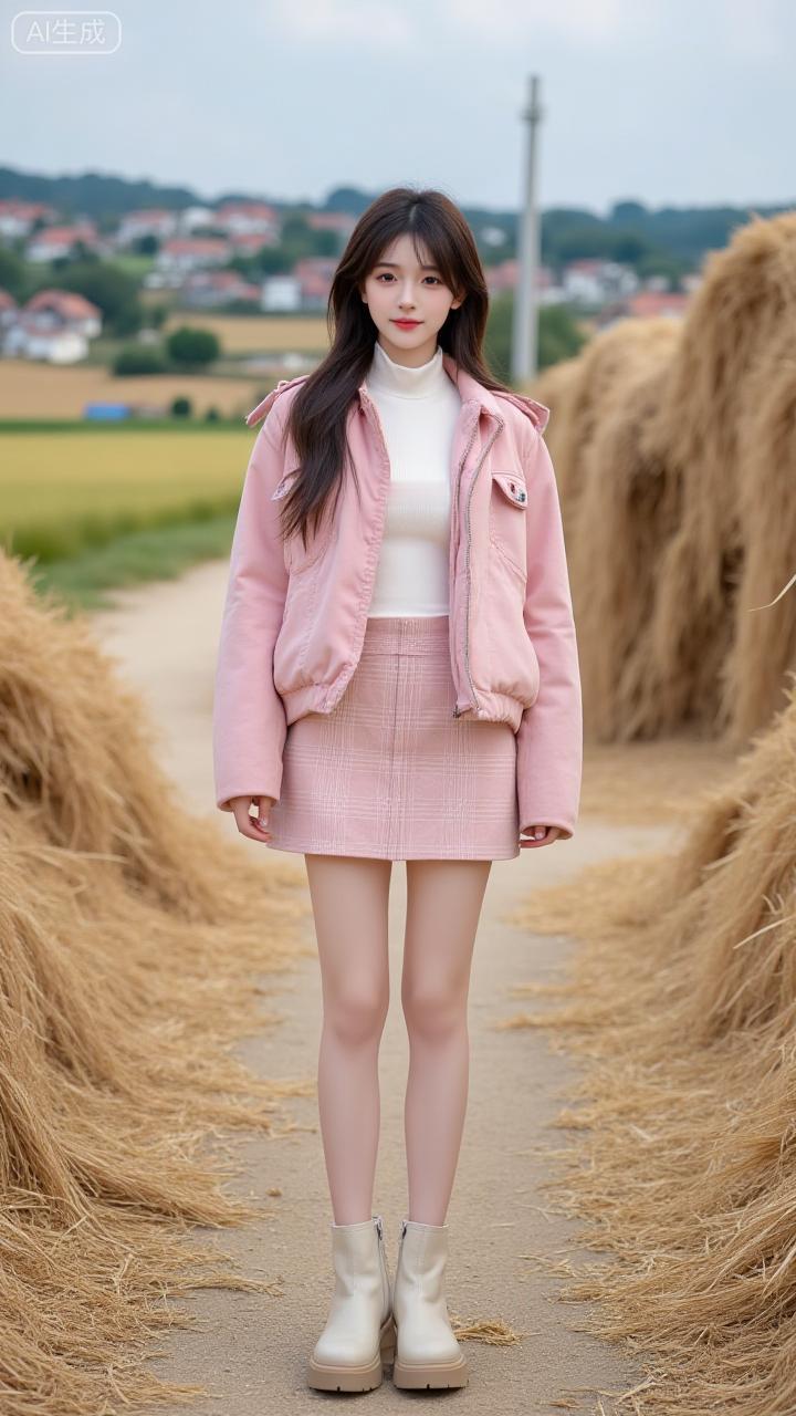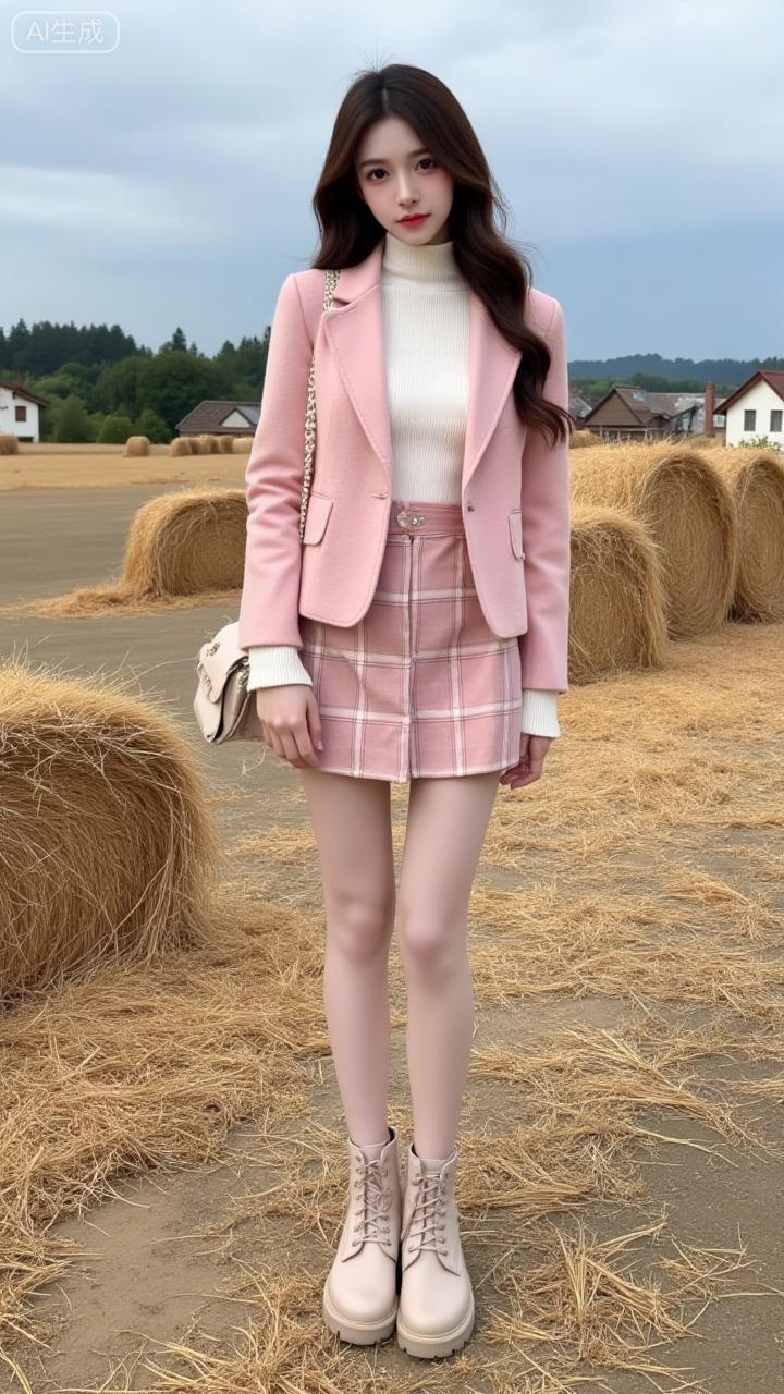 麦垛裹着浅粉的甜,格裙碰了绒衫的暖,田风晃出乡野的软。连靴筒都浸着秋日的松弛。 田园甜系穿搭田园温柔风穿搭 田园穿搭