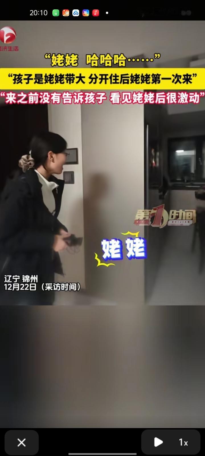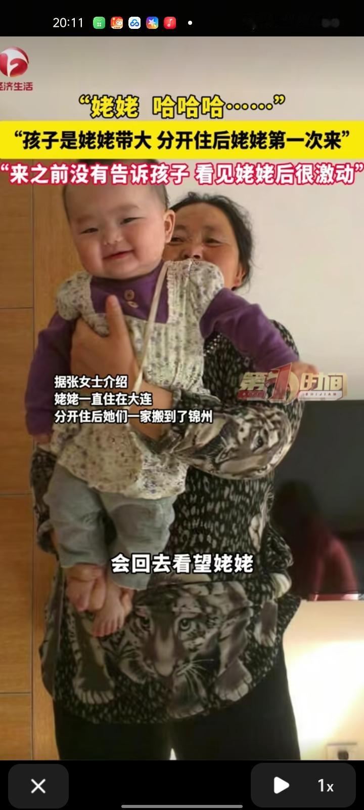 12月19日,辽宁锦州。孩子妈妈张女士发布一段视频,女儿和姥姥分开四年,这次姥姥第一次来,来之前没告诉她,她看到后很激动,上前就给姥姥一个拥抱。张女士介绍,姥姥一直住在大连,分开住后一家搬到锦州。孩子是姥姥一手带大的,小时候生病只能姥姥抱,谁抱都不行。姥姥对孩子非常好,自己花钱舍不得给孩子买东西,却从来不心疼钱。