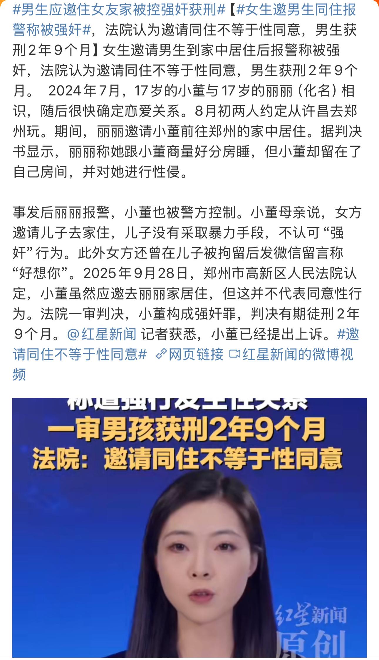 邀请同住不等于性同意,这一点应该是法律上的共识,何况这个案例里面邀请的还是分房睡。但是否涉嫌强奸,还是要看具体的行为和证据,比如有没有强迫等等。这两年关于强奸的争议案例越来越多,一些法律上的认定标准也应该适当的调整或者进行论证了,要与时俱进,不能放过坏人也不能冤枉好人。男生应邀住女友家被控强奸获刑热点观点 男生应邀住女友家被控强奸获刑