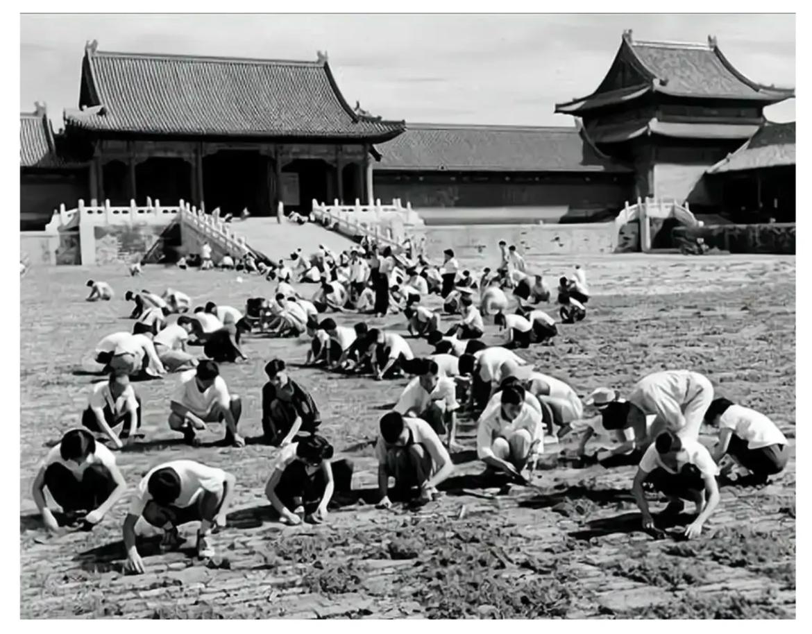 新中国成立前的故宫荒草丛生、老鼠遍地、屎尿横流、垃圾如山,甚至还有流浪汉搭建的栖身的破棚子… 新政府召集了7万人参与故宫清理,历时9个月,搬了8000多车垃圾,才让故宫展露出真面目。传说有999间半房子的故宫,当年还有皇帝的时候,宫女太监养了一两万人,据说那卫生也搞得不咋滴,那些人迹罕至的角落也是屎尿遍地、鼠虫乱窜。 这么大的皇宫,搞卫生可是个耗时耗力的大工程。
