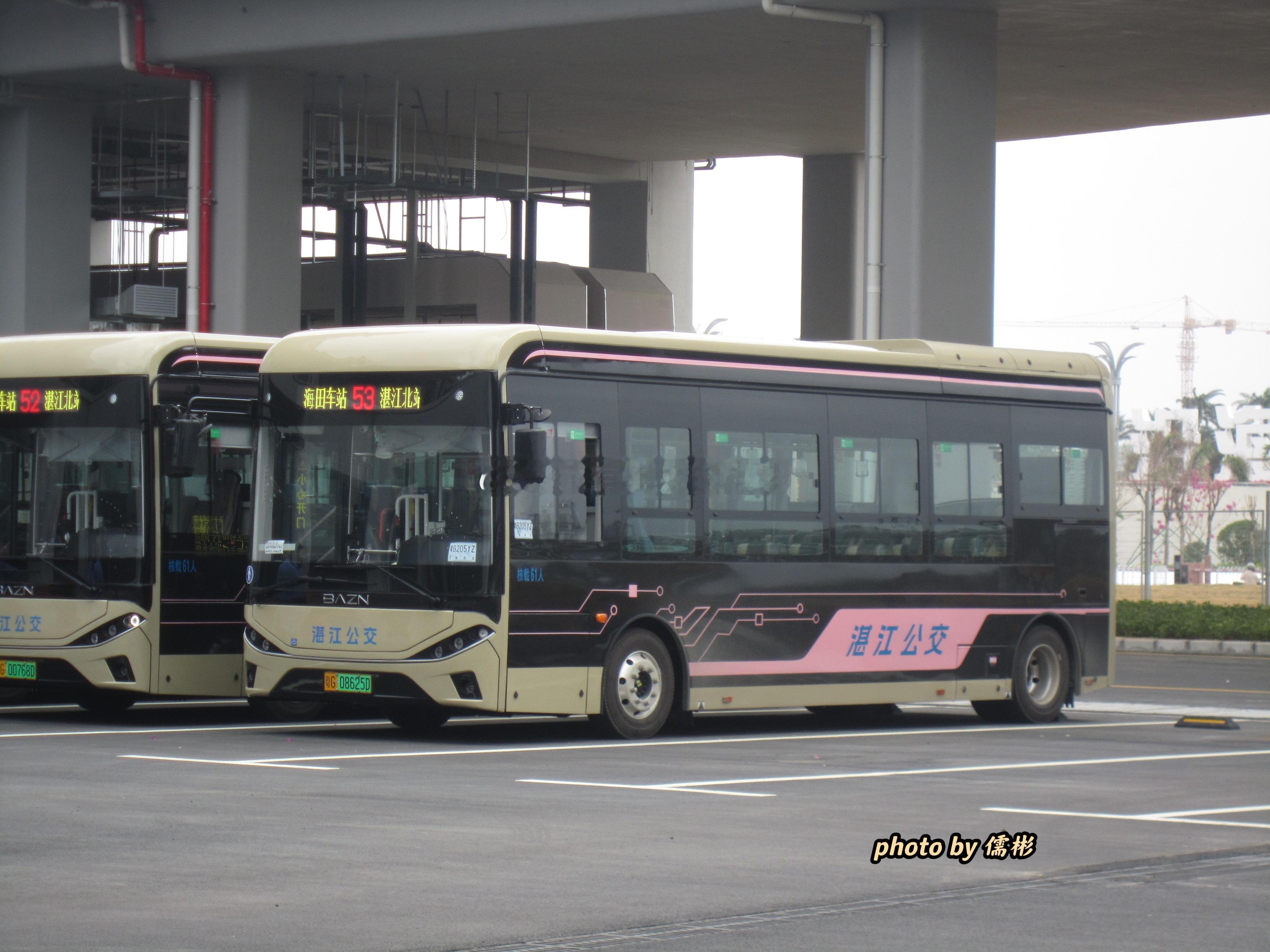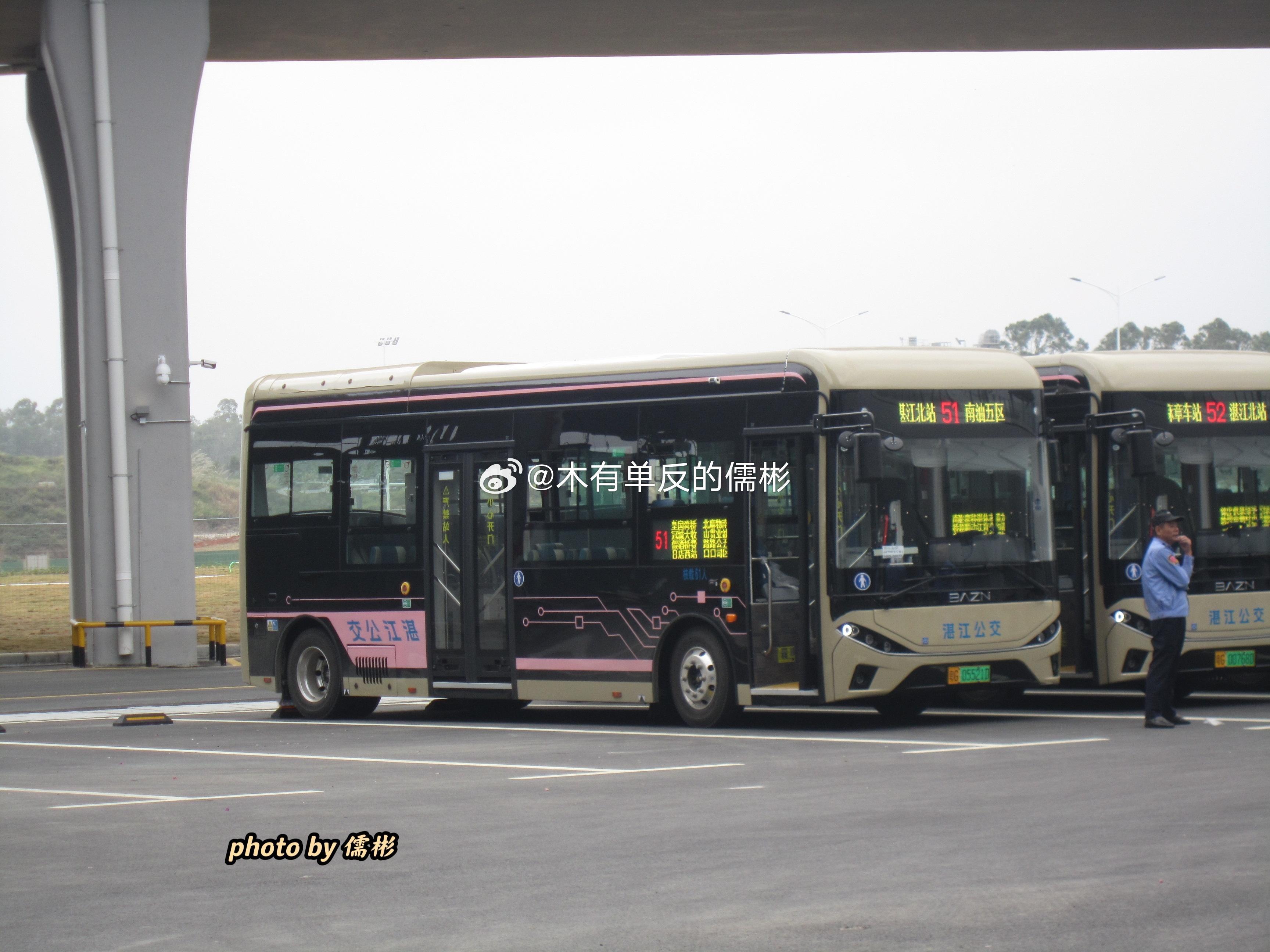 广湛高铁今天终于通车了,湛江北站也同步启用了于是湛江公交今天开通了4条往湛江北站的线路:50路(湛江北站——霞山总站)51路(湛江北站——南油五区)52路(湛江北站——麻章车站)53路(湛江北站——海田车站)票价均为2元,并且4条新线全线配置新购入的中兴拜辰GTZ6879BEVB1,全软座+安全带的配置,每条线配置4辆新车今天特地前往湛江北站拍摄了这4条新线和新车